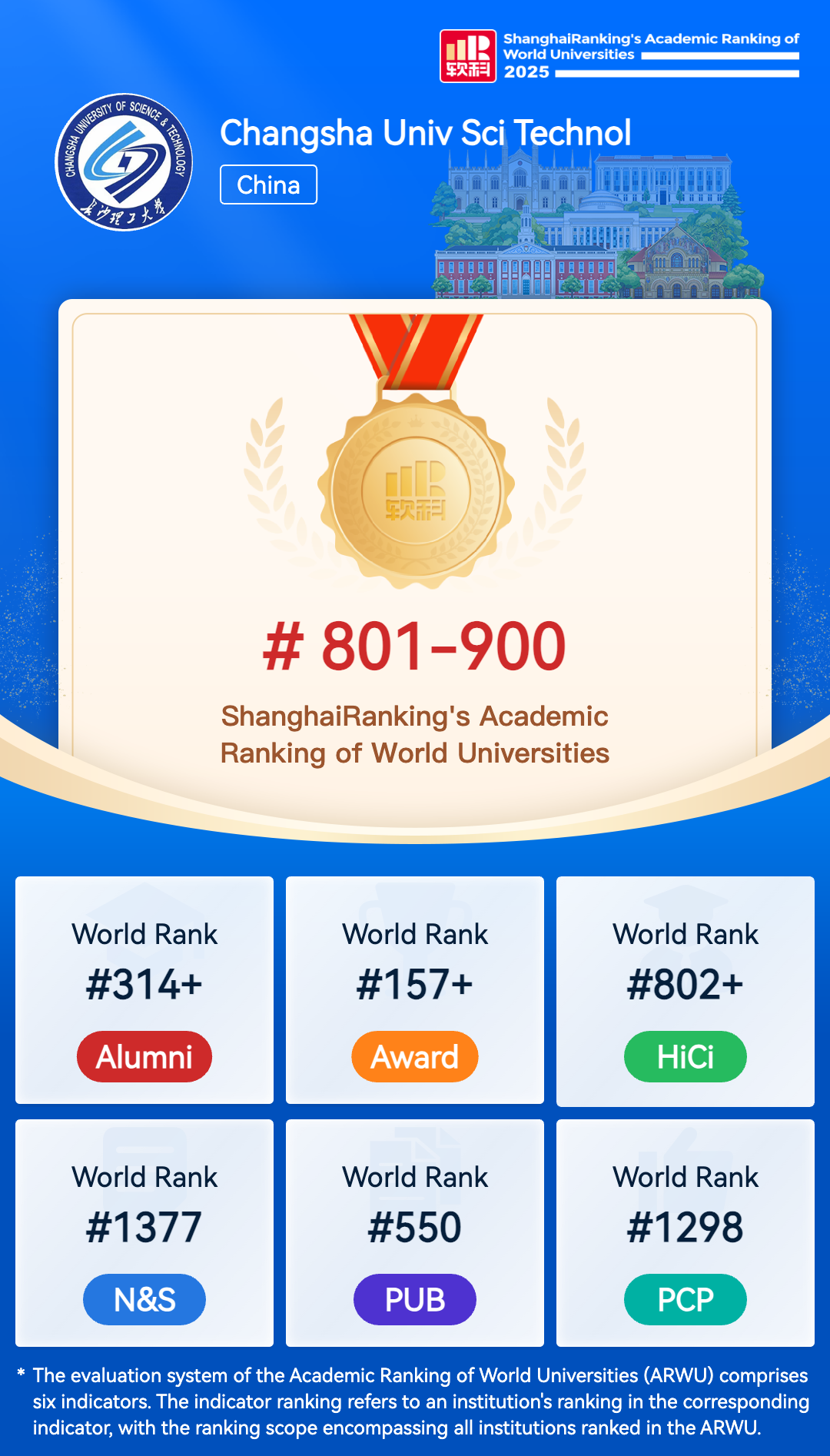 The Academic Ranking of World Universities (ARWU) is recognized as the precursor of global university rankings and the most trustworthy one. ARWU presents the world's top 1000 research universities annually based on transparent methodology and objective third-party data.