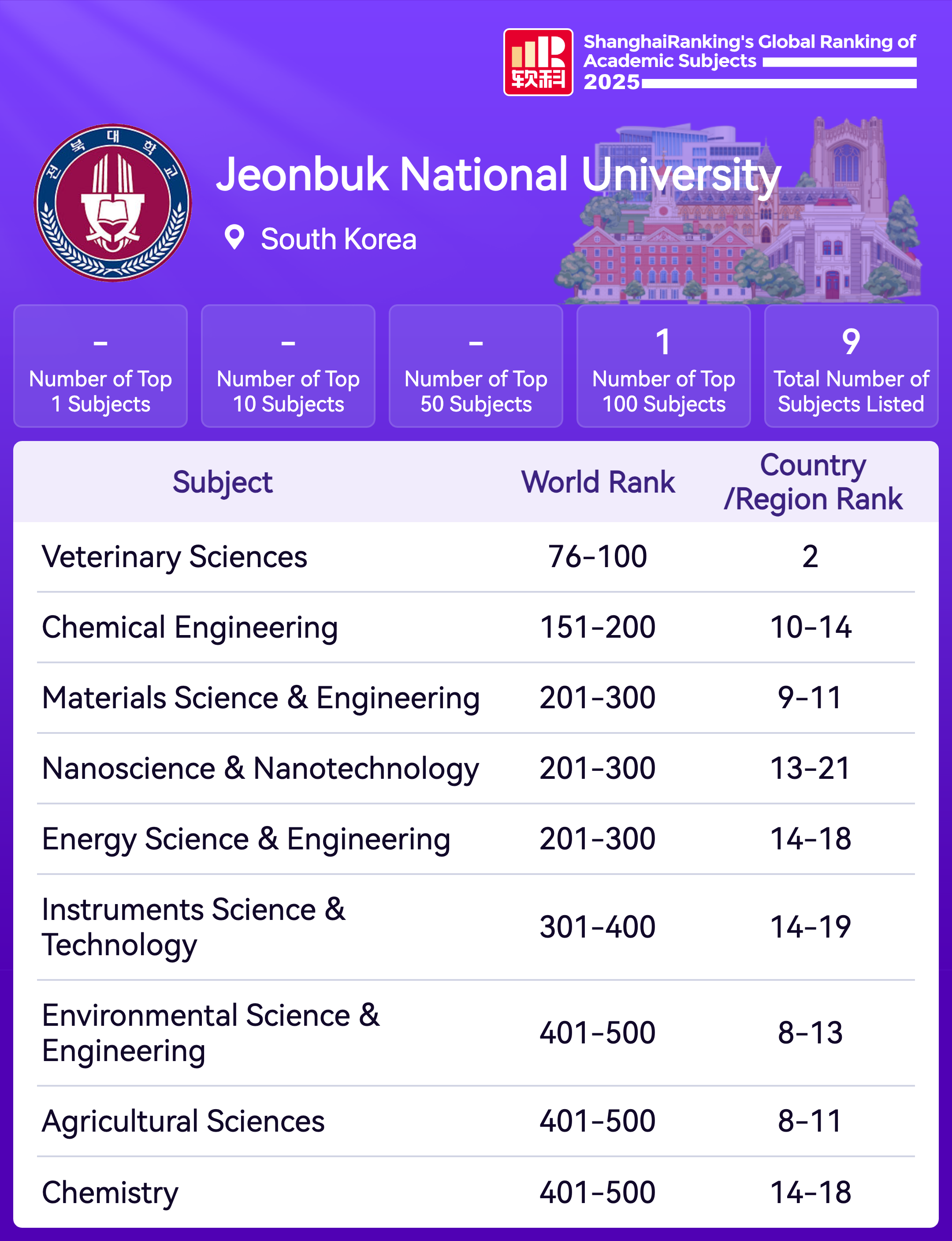 전북 대학교는 한국을 대표하는 강건한 한국 국립 대학교입니다. 가장 많은 한국 도시인 전주에 본사가 있으며 15 개의 단과 대학과 14 개의 대학원이 있습니다. 49 개국에서 1,600 명의 교수진, 32,000 명의 학생과 1,100 명의 유학생이 있으며 200,000 명의 졸업생을 배출했습니다. 전북 대학교는 꾸준한 변화와 혁신을 통해 국가의 경쟁력을 선도하고 있습니다. 국내외 여러 대학의 평가에서 한국 국립대 중 2 위를 차지하고 있습니다. 그러나 전북 대학교는 이에 만족하지 않고 올해로 70 주년을 맞아 '성장 후 성숙한 대학'으로 도약 할 준비를하고있다. 대표적으로, 우리는 모범생 이상의 모험 학생을 양성합니다. 모델 학생이 자신이 수행 한대로 열심히 노력한다면 모험 학생은 동료와 의사 소통하고 새로운 방식으로 해결하는 창조적 인 사람을 의미합니다. 연구 분야에서는 고온 플라즈마 용 플라즈마 응용 센터, 일반 전염병 연구소 및 로스 알 라모스 코리아 공과 대학교와 같은 세계적 수준의 연구 기관을 육성하여 세계 정상급 학문 분야를 개발하고 있습니다. 또한 한국의 대부분의 한국 도시 전주의 브랜드를 활용하여 가장 많은 캠퍼스를 만들었습니다. 이 대학은 130 만 평방 미터의 도시 숲과 세계의 모든 대학에서 설립되지 않은 덜래길 길을 건설하여 전북 대학교의 생태 공간과 명품 브랜드로 자리 매김하고 있습니다. 전북대는 이제 한국을 뛰어 넘어 세계적 수준의 대학과 나란히 자리 잡은 대학이되었습니다. 세계는 전북 대학교의 변화에 주목하고 있습니다.