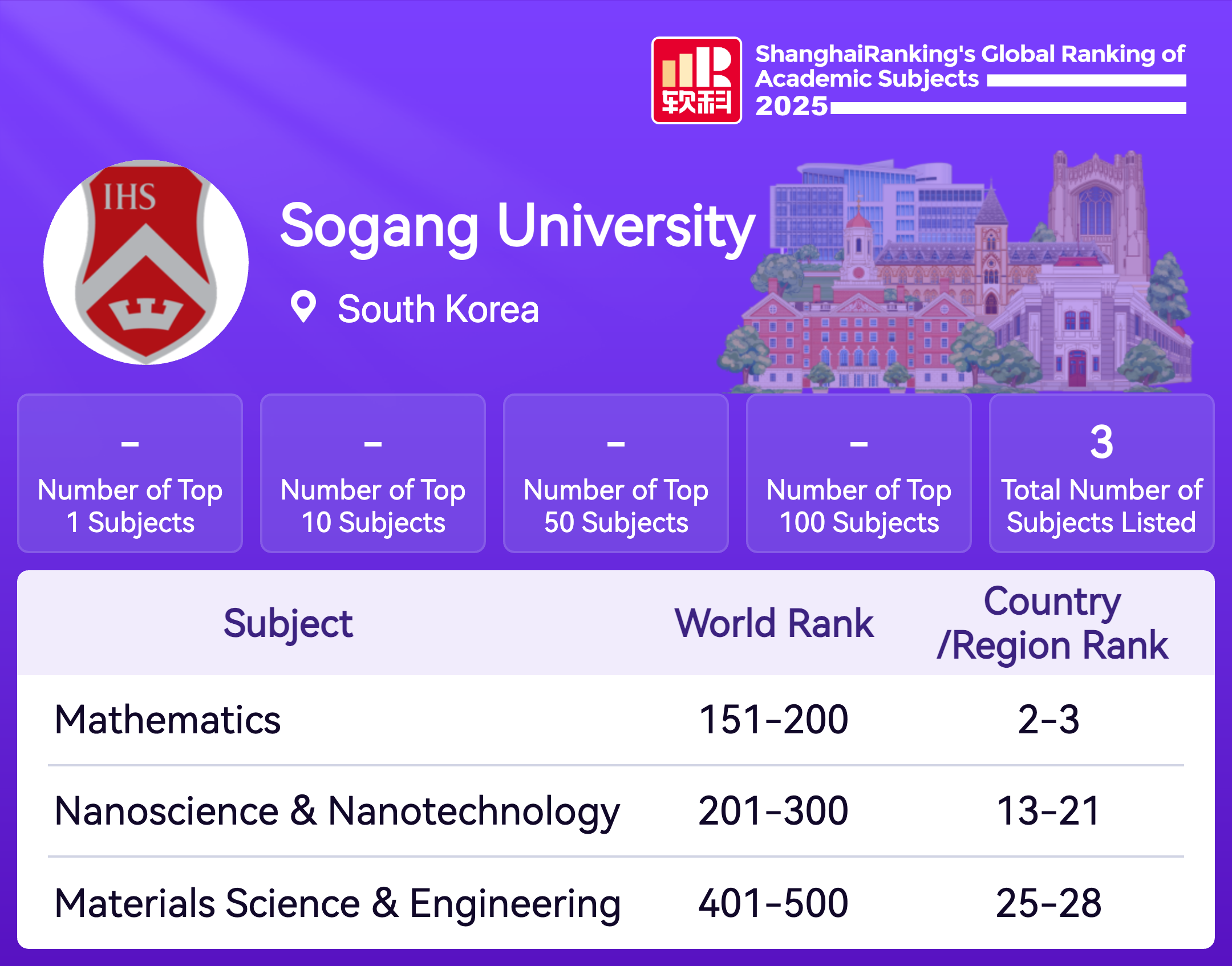 | Subject | Rank |