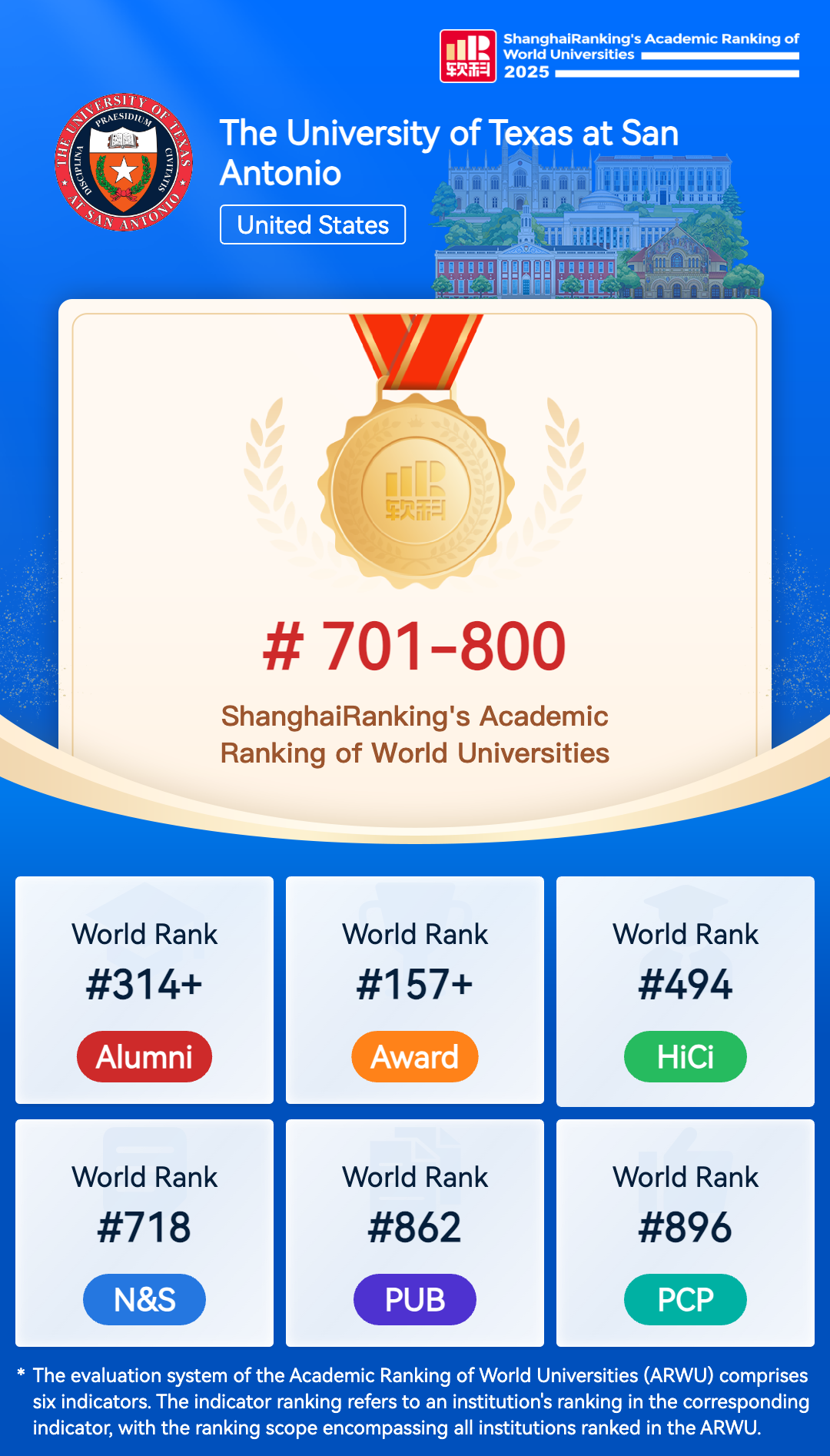 The University of Texas at San Antonio (UTSA) is redefining higher education as a next-generation Hispanic-thriving university where students from all backgrounds can excel. As the largest university in San Antonio with more than 34,000 students, UTSA is one of approximately 20 universities nationwide classified as both Hispanic Serving Institutions and Tier One for research excellence. With a focus on student success and research excellence, UTSA is serving as a model for the urban-serving public universities of the future. Through the transformational learning experiences that we provide, UTSA is creating bold futures for our students, the citizens of San Antonio and beyond. The University of Texas at San Antonio ranks No. 9 in the nation in the number of undergraduate degrees awarded to Hispanics, according to 2019 Diverse Issues in Higher Education magazine rankings. The university continues to make great strides in its five areas of research and academic excellence: health, energy and the environment, security, sustainability, and human and social development. To that end, the university partners with a variety of local research organizations and maintains research collaborations across the nation and abroad. The university provides access and opportunity for large numbers of historically underserved students. Nearly 45 percent of UTSA's students will be the first in their family to graduate college with a bachelor's degree or higher.