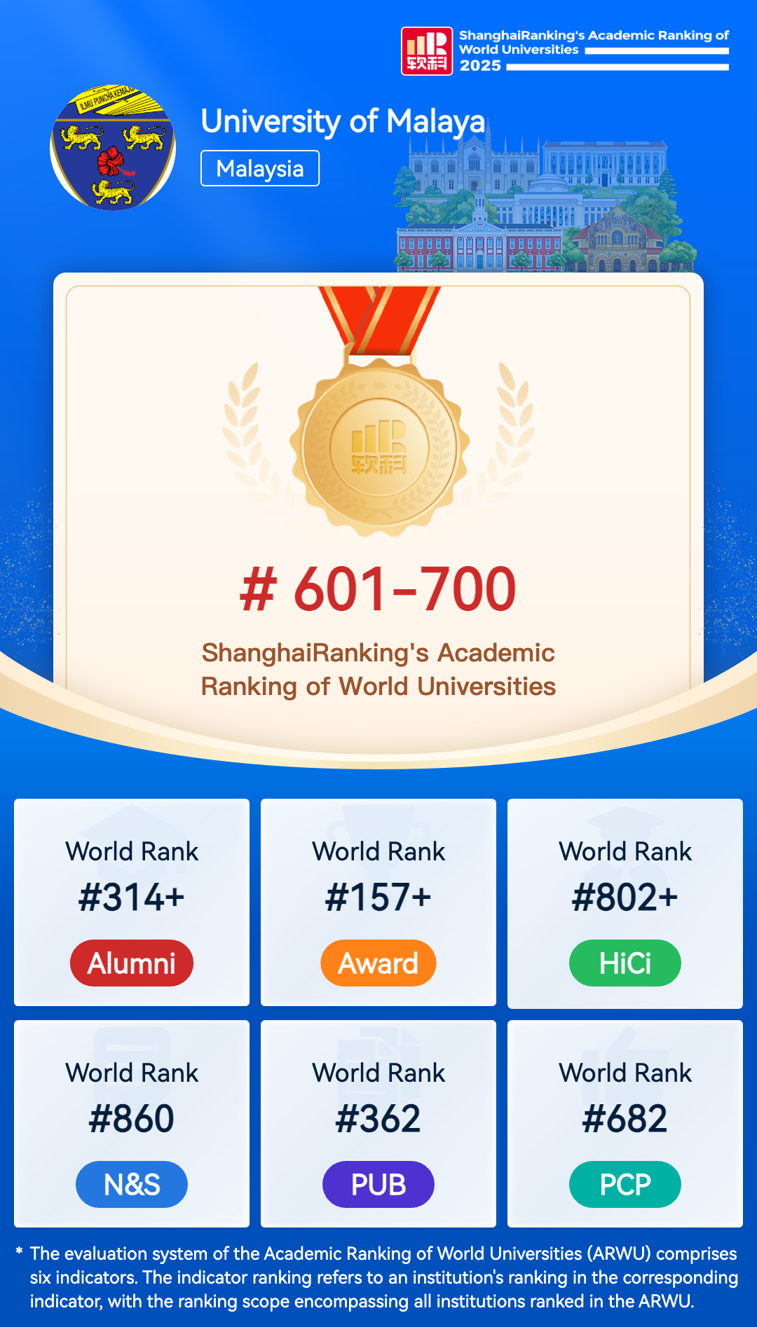 The Academic Ranking of World Universities (ARWU) is recognized as the precursor of global university rankings and the most trustworthy one. ARWU presents the world's top 1000 research universities annually based on transparent methodology and objective third-party data.