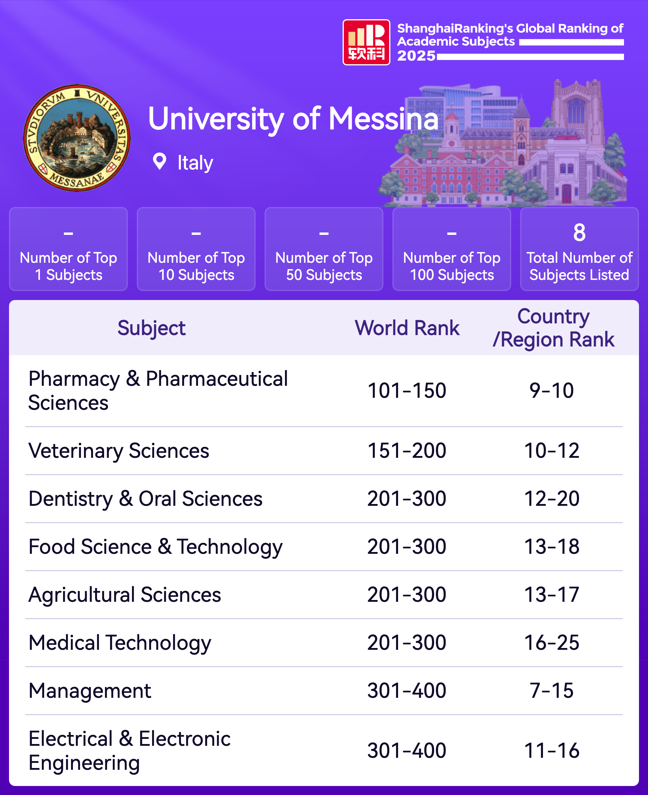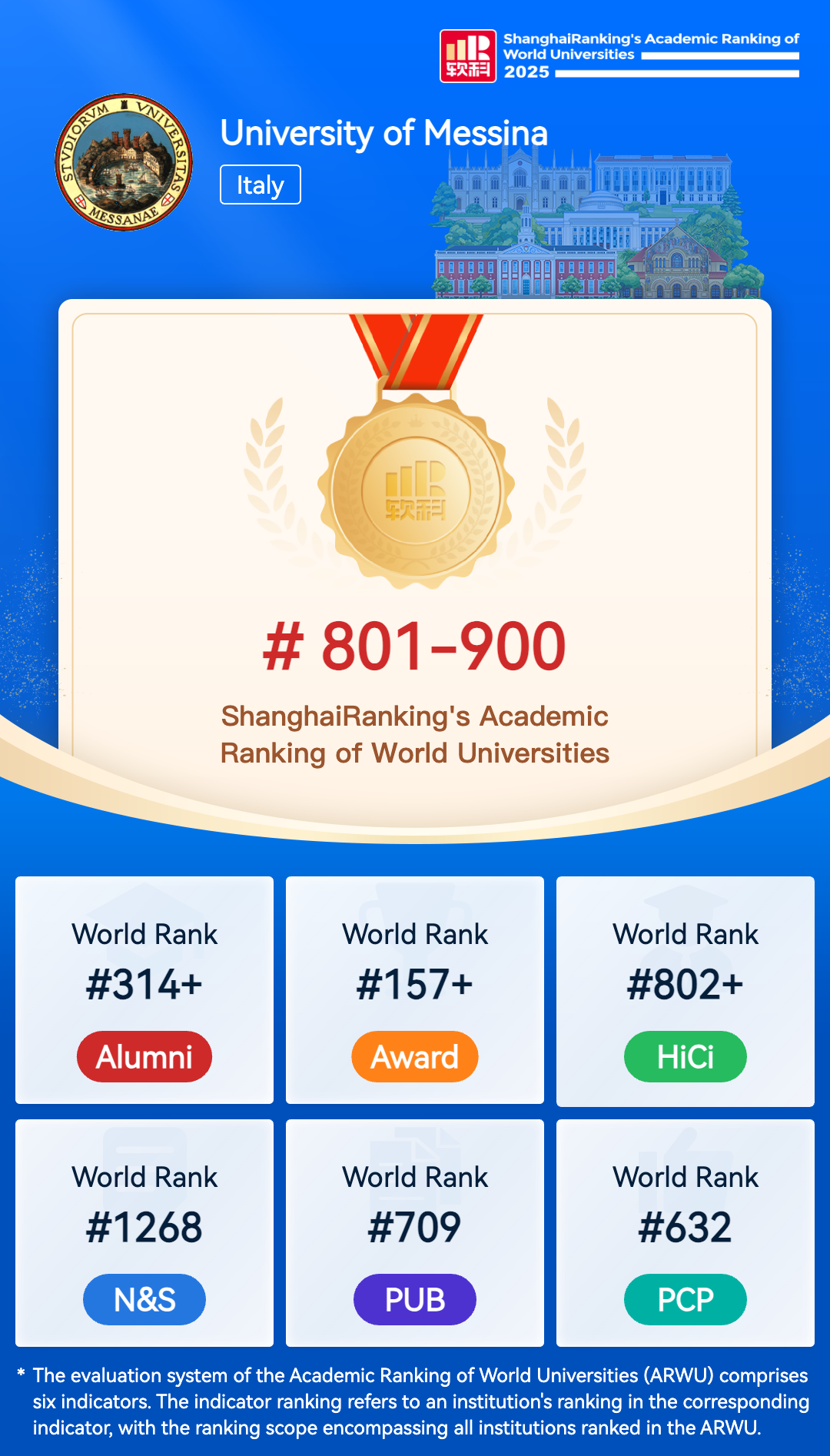 The foundation of the University of Messina dates back to the XIII century with the establishment of a School of Law. Over the centuries the University underwent through turmoil, facing challenges and evolutions. In 1838 the University was finally refunded by King Ferdinando II. The earthquake in1908 destroyed a great part of the University structures, including its famous library and the scientific equipment. But only a year later in 1909 the Faculty of Law was reopened, while the Faculties of Science, Pharmacy and Medicine reopened in the years 1914/15. In the following decades the University of Messina enriched its academic offer with the establishment of the Faculties of Arts and Humanities, Economics, Education, Engineering, Political Science and Veterinary Medicine. After the reform of the Italian University System (Law240/2010) the University of Messina includes 21 Departments, covering the widest range of disciplines: Department of Environmental Science, Territorial, Food and Health Security (S.A.S.T.A.S.); Department of Cognitive Science, Education and Cultural Studies; Department of Paediatric, Gynaecological, Microbiological and Biomedical Sciences; Department of Biological and Environmental Sciences; Department Human Pathology; Department of Electronic, Chemical and Industrial Engineering (DIECII); Department of Veterinary Sciences; Department of Economic, Business and Environmental Sciences and Quantitative Methodologies; Department of Juridical Science and History of the Institutions Department of Chemical Science; Department of Human and Social Science; Department of Law; Department of Neurosciences; Department of Physics and Hearth Science; Department of Clinical and Experimental Medicine; Department of Biomedical Sciences and of Morphologic and Functional Images; Department of Experimental Medical-surgery Science, Specialist and Odontostomatologic Science; Department of Mathematics and Computer Science; Department of Civil, Computer, Construction and Environmental Engineering and of Applied Mathematics (DICIEAMA); Department of Pharmaceutical Sciences and Health Products; Department of Ancient and Modern Civilization. UniMe Departments are located in the main sites of the University: “G. Martino” – University Hospital, Central buildings, “Annunziata”campus, “Papardo” campus. All University sites can be reached by public transport. The Rector represents the University legally and institutionally; he is the head of the University organization. He is responsible for the pursuit of the University's goals based on quality criteria and in compliance with the principles of effectiveness, efficiency, transparency and the promotion of merit. The Vice Rectors cooperate with the Rector in the management of the University. The Academic Senate is the representative body of the university community. It is involved in the general administration of the University and the appointment of the members of the Board of Governors. The Board of Governors is in charge of strategic planning as well as the financial and staff programming of the University. Board established to control the University's accounting and certify the regularity of the its economic, financial and assets management. University Body responsible for the evaluation of the University's teaching, research and administrative activities. In line with the instructions issued by the Board of Governors, the General Director is responsible for the general management and organisation of the University services, resources and technical-administrative staff, as well as the tasks required under the statutory provisions governing public administration management. Rector Prof. Francesco Tomasello, Deputy Rector Prof. Rita De Pasquale, Director General Prof. Francesco De Domenico Since1999, the National Higher Education System, hereby NHES, has been fully reformed so as to meet the aims of the "Bologna process". According to the Italian legislation (DM 270/04), the NHES is now organised in 3 cycles: the 1st cycle academic degree is the “Laurea” which grants access to the 2nd cycle academic degree or 1st level university master. The “Laurea Magistrale”is the main degree of the 2nd cycle. It gives access to 3rd cycle degree programmes resulting either in “Dottorato di Ricerca” (Doctorate research programmes) or in School of Specialization or 2nd level university master. Hence, the structure of the Italian Higher Education System may be reviewed as follows: First cycle bachelor (3 years) Second cycle Master’s degree (2 years) One long cycle degree (5/6 years) First level vocational Master Third cycle research doctorate Specialization Schools Second level vocational Master