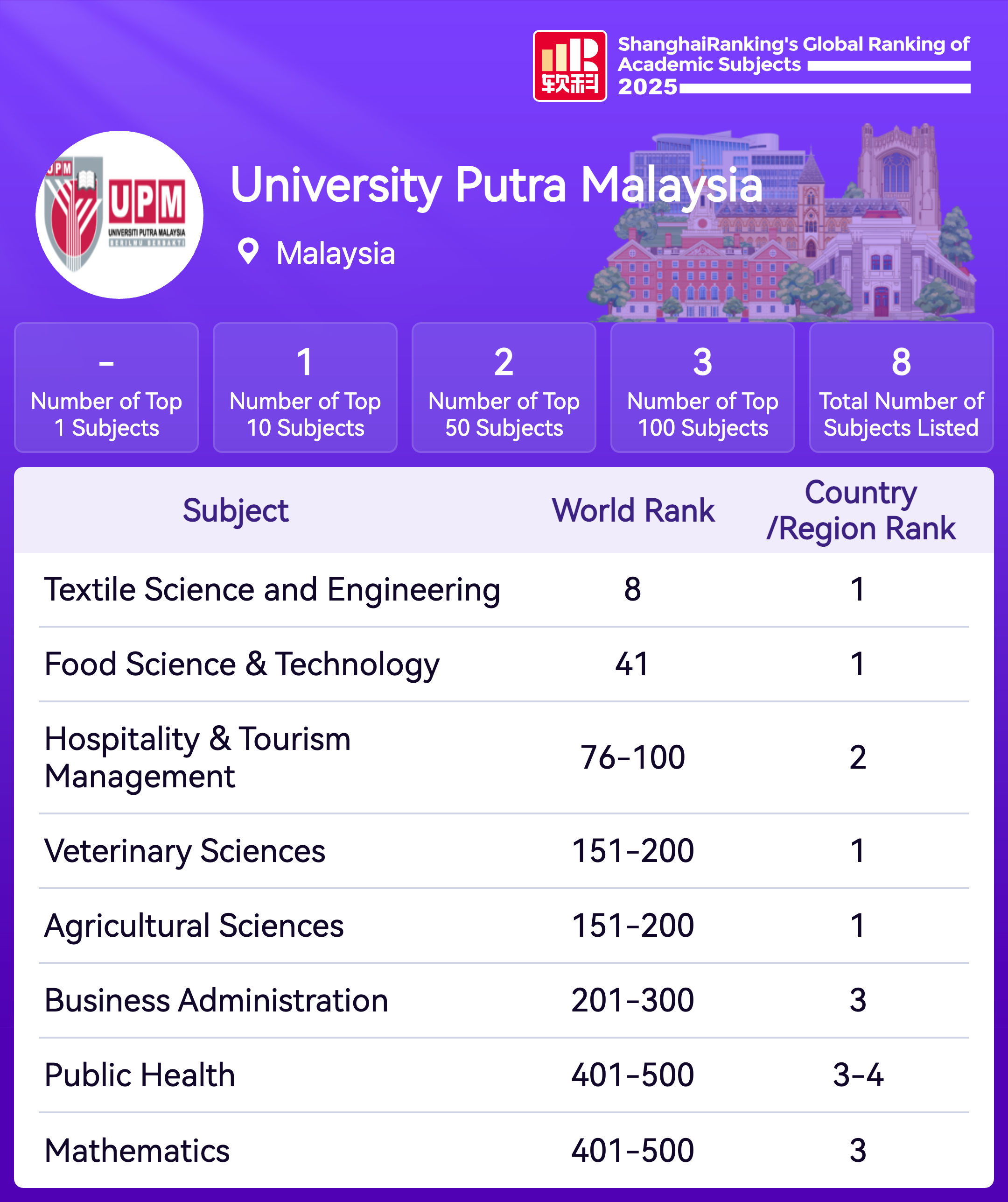 Universiti Putra Malaysia advanced on all fronts: physical, academic, as well as research and development. The discipline in the University has evolved tremendously in tune with the rapid industrialization of the country’s economy as well as the fast development of related technologies such as ICT and biotechnology besides reflecting its emphasis on new tropical agriculture which is multi-disciplinary, technology driven and market oriented. Currently, UPM has 16 faculties, one school, 10 research institutes and one Academy. UPM has expanded the scope of its academic and research disciplines to include engineering, medical sciences, pure sciences, biotechnology, economics, management, education, languages and communication. These disciplines enhance the new agriculture through related fields such as agriculture and food engineering, biotechnology, agribusiness and ICT in agriculture. This synergy of vibrant and enterprising disciplines has allowed UPM to gain national and international recognition as well as leadership in academia, industry and public advocacy. Based on its excellent performance, the University has been recognized as one of 5 Research Universities (RU) in 2006 by the Government of Malaysia. One of the factors that have contributed to its success is its conducive institutional set up, physical layout human resource, academic programmes, research and development. UPM also has an impressive record of academic awards conferred by renowned international and local agencies or institutions. Among these awards are: Carlos J. Finlay Prize for Microbiology (by UNESCO); IRTE and Prince Michael International Road Safety Award (United Kingdom); and Young Chemist Award to be named a fews. The Graduate School of Management has been chosen by the Ministry of Higher Education as Top Business Schools in Malaysia. A number of UPM academic staff has also been appointed to top positions in the public and private sectors on the basis of the expertise and experience.UPM’s human capital are highly trained and experienced.