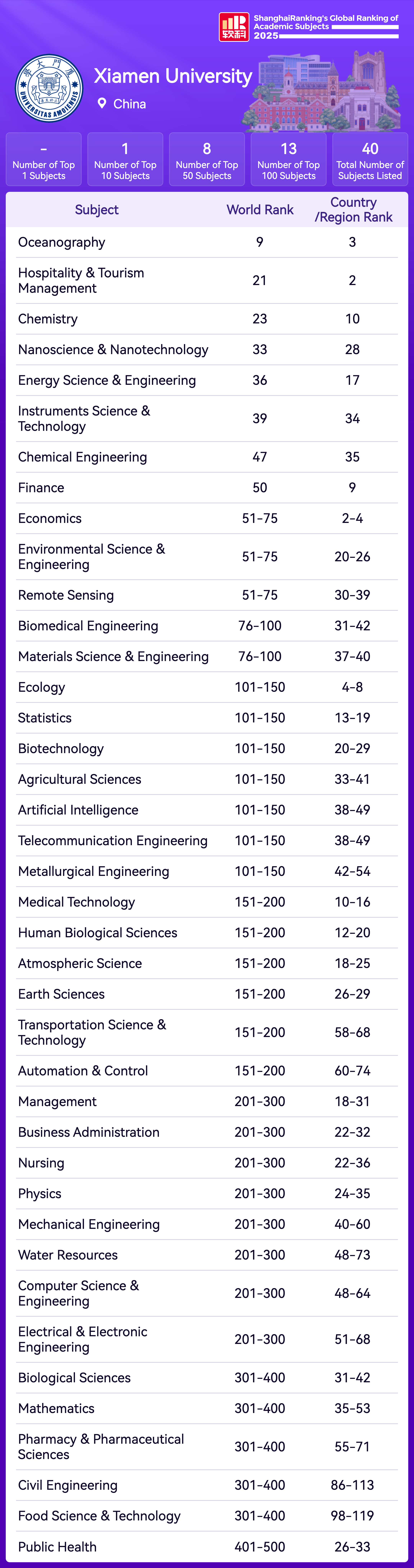 Xiamen University was founded in 1921 by Tan Kah Kee, the well-known patriotic overseas Chinese leader. It was the first university in China founded by an overseas Chinese. At present it is the only university in any of five special economic zones and is one of China's higher-level universities designated for the state key construction of the “211 Project” and the “985 Project”. Over the past 93 years, as the result of following the school motto: Pursue Excellence, Strive for Perfection, Xiamen University has accumulated rich experience in offering its educational programs and has presented its distinctive features in running the programs. Equipped with a strong team of faculty and staff, Xiamen University, which provides a fairly complete range of programs of education, has become a first-class comprehensive university in China with extensive international influence. Since its founding, Xiamen University has produced more than 200,000 undergraduates and graduates for the country and over 60 academicians of the Chinese Academy of Sciences (CAS) and the Chinese Academy of Engineering (CAE) have studied or worked at Xiamen University. Xiamen University has a graduate school, 27 schools containing 66 departments and 10 research institutes and research centres. With 31 Doctoral degrees in first –class disciplines, and 50 Master degrees in first-class disciplines, the university offers 84 undergraduate programs, 276 graduate programs, and 187 PhD programs. 14 subjects have been assessed and awarded as “the national key disciplines”. There are 26 Post doctoral research centres, 9 subjects of “national educational centres for talents”, 5 first-class and 9 second-class national key disciplines. Xiamen University has a high level team of faculty and staff including 2,678 full-time faculty and professional researchers, including 1713 professors and associate professors of whom 23 are academicians of CAS and CAE Moreover, 10 faculty members of Xiamen University are seated on the State Council's Academic Degree Appraisal Committee. 43 professors have been under the National “ Thousand of Overseas Top Talents Scheme”; 14 have been listed in the "One-hundred plus One-thousand plus Ten-thousand Talent Project”; 151 have been included in the Ministry of Education's training program for the "Leading Figure for the New Century"; 38 have obtained the "Science Grant for National Outstanding Youth" from the state; There are 15 special and 14 speech professorships of “Yangtze Scholar”, 5 “National Innovation Research Team” and 7 “Education Ministry Innovation Group” . The university now has a total enrolment of over 40,000 full-time students on campus, including 19570 undergraduates, 17,490 master students, 2,919 doctoral students, and over 2800 international students. In 2005, Xiamen University received a straight-A score in the undergraduate level Teaching Appraisal organized by the Ministry of Education. Xiamen University has set up over 150 research institutions, including 4 State Key Laboratories, 1 State Engineering Research Centre, 5 Education Ministry Key Laboratories, and 5 state key research bases in humanities and social science. 40 research reports were published in internationally high-level academic journals such as Science, Nature, the Lancet, etc. 4 scientific research findings won the Second Class Prize of National Natural Science Award over the last 5 years. Xiamen University has strong potentiality in human and science research. Taiwan studies, Southeast Asian studies, economic studies, and accounting studies are at the highest tier among domestic universities. Xiamen University has inter-university cooperative ties with over 270 institutions of higher education at home and abroad. Xiamen University has formally established multi-lateral cooperative relationship with seven other universities around the world by signing the Agreement on Global U8 Consortium in 2004. In 2005, there were 8 members of this group. Xiamen University vigorously promotes the campaign of teaching Chinese as a foreign language. The university has co-established 15 Confucius Institutes with universities in North America, Europe, Africa, etc. Because of its especially favourable geographical location and advantageous human resources, it is the key university most actively engaged in cross-straits educational, scientific and cultural exchanges. At present, Xiamen University’s 3 campuses cover over 600 hectares. With green hills behind and fronting the sea, Xiamen University is recognized as one of the most beautiful universities in China. Xiamen University has a constructed area of 1.9 million square meters and its libraries hold 4.48 million volumes (including 39,204 gigabytes electronic volumes). The scope and level of its high-speed information network on campus is rated at the top of all universities in China and has become the one of the main injunctions of CERNET2. Xiamen University is now making great strides towards its goal of "building a high-level university well-known both at home and abroad."