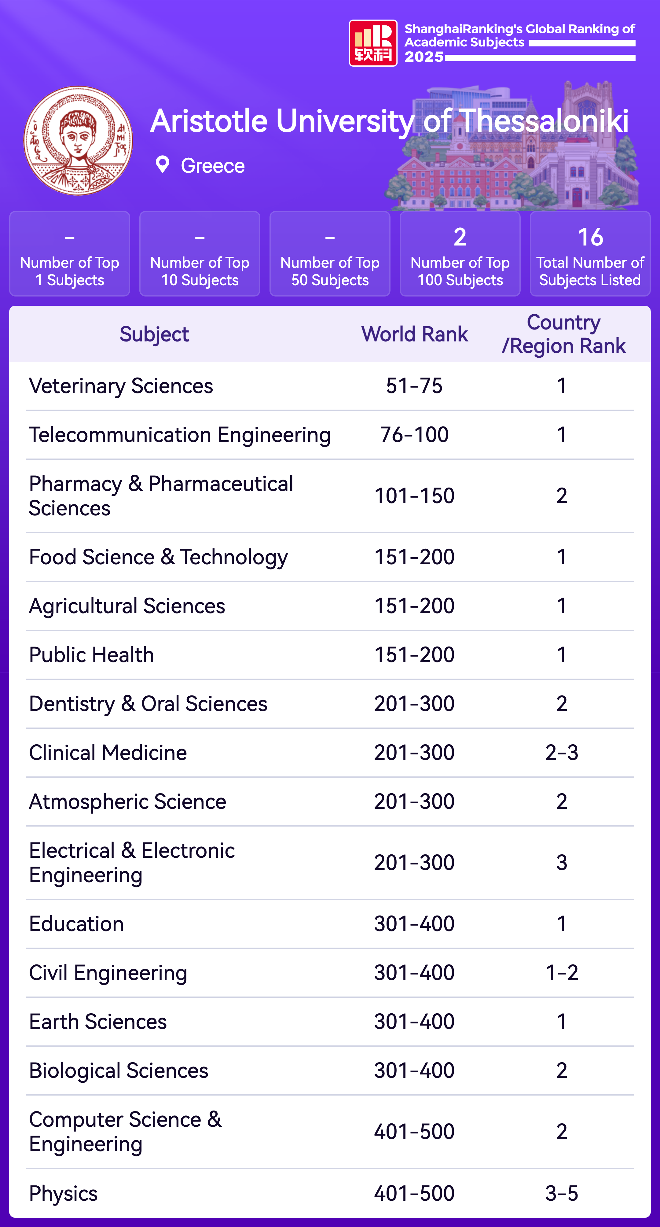 Greek Universities are legal entities of public law with full self-governance -under the supervision of the Ministry of Education, Lifelong Learning and Religious Affairs- and their mission is determined in the Legal Framework for Higher Education (Nr. 1 N. 3549/07 Official Gazette 69 A). Given this fact, the Aristotle University’s of Thessaloniki (AUTh’s) particular triptych is specified as Interdisciplinarity, Internationalization and Intercultural Education. The Foundation Act for the University of Thessaloniki was published in the Official Gazette on June 22, 1925. The University Campus covers around 23 hectares in the centre of the city of Thessaloniki, but some educational and administrative facilities are located off campus for practical and operational reasons. Some of them are located outside Thessaloniki or even in other cities. The Aristotle University of Thessaloniki (AUTh) is the largest University in Greece, comprising 10 Faculties organized into 40 Schοols and 1 single-School Faculty. It has 2056 members of Academic Staff and 1438 of all the other staff categories. It has a total of 65026 registered undergraduate students (of which 3543 international) and 8472 postgraduate students (4520 at Master’s Level and 3952 at Doctoral level). BACHELOR DEGREE PROGRAMMES: All 41 AUTh’s Schools offer a bachelor degree. Faculty of Theology: School of Theology, School of Ecclesiastical and Social Theology Faculty of Philosophy: School of Philology, School of History and Archaeology, School of Philosophy and Pedagogy, School of Psychology, School of English Language and Literature, School of French Language and Literature, School of German Language and Literature, School of Italian Language and Literature Faculty of Sciences: School of Mathematics, School of Physics, School of Chemistry, School of Biology, School of Geology, School of Informatics Faculty of Law: School of Law Faculty of Economics and Political Science: School of Economics, School of Political Science, School of Journalism and Mass Media Studies Faculty of Engineering: School of Civil Engineering, School of Architecture, School of Rural and Surveying Engineering, School of Mechanical Engineering, School of Electrical and Computer Engineering, School of Chemical Engineering, School of Urban-Regional Planning and Development Engineering Faculty of Fine Arts: School of Visual and Applied Arts, School of Music Studies, School of Drama, School of Film Studies Faculty of Education: School of Primary Education, School of Early Childhood Education Faculty of Health Sciences: School of Medicine, School of Veterinary Medicine, School of Dentistry, School of Pharmacy Faculty of Agriculture, Forestry and Natural Environment: School of Agriculture, School of Forestry and Natural Environment Faculty of Physical Education and Sports Sciences: School of Physical Education and Sports Sciences (Thessaloniki), School of Physical Education and Sports Sciences (Serres) MASTER DEGREE PROGRAMS: The 41 Schools of AUTh offer a total of 68 Postgraduate Programmes. Breakdown as follows: 48 MASTER PROGRAMS, 1 ENGLISH SPEAKING, 2 GREEK-FRENCH, 2 ERASMUS-MUNDUS, 16 INTERDISCIPLINARY, 3 WITH OTHER UNIVERSITIES. Furthermore AUTh has 23 special Agreements (Protocols) for PhD. The PhD level ends up to academic/research doctoral degrees. INTERNATIONAL RELATIONS: AUTh has 138 bilateral agreements with Universities in Europe, the USA, Canada, Australia, Asia to promote the academic cooperation and communication among students and academic staff. EUROPEAN EDUCATIONAL PROGRAMMES: 2012 AUTH was awarded the Diploma Supplement Label by the European Commission. It has bilateral agreements with 596 European Universities and participates in LLP/ERASMUS, ERASMUS MUNDUS, ERASMUS MUNDUS EXTERNAL Cooperation Window, TEMPUS, EU-Canada, EU-Australia (GEJI) etc LANGUAGE OF TEACHING: All courses are offered in Greek language. International students are obliged to take courses of Greek Language in order to have the right to study at AUTh. EDUCATION AND RESEARCH UNITS: Under the supervision of AUTh are the following independent education and research units (situated either in or outside the main University Campus and the city of Thessaloniki). The Aristotle University Central Library is one of the largest in the Balkans. The entire library system has access to approximately 800,000 book titles, 18000 journals and 3000 printed subscriptions. The Experimental schools (primary and secondary education), The Institute of Modern Greek Studies The School of Modern Greek Language The Center for Foreign Languages Teaching The Centre for Byzantine Research The Telloglion Foundation of Art The University Clinics of the Faculty of Medicine (AUTh comprises one University Hospital and is affiliated to another 6 Hospitals) The Clinics of the Faculty of Veterinary Medicine The Animal Breeding and Treatment Station in Kolhiko The University Farm The University Forests in Pertouli and Taxiarchis The Seismologic Station Olympus Scientific Station UNESCO Chair on Education for Human Rights and Peace (established 1997) UNESCO Chair and Network/International Network of Water-Environment Centers of the Balkans (established 2003) IASON PROGRAMME: supports Greek Studies Courses offered in Black Sea countries and/or the establishment of small Greek Studies Departments The University Summer Camp in Posidi The University Sports Center MUSEUMS OF AUTh: The Cast Museum, the Folklore Museum, the Biblical Museum, the National Museum of Education, the Museum of Zoology, the Museum of wild fauna, the Botanical Museum, the Criminological Museum, the Forest Engineering Museum of Survey Instruments and Maps, the Museum of Modern Greek History, the Museum of Architecture and various archives and collections. CULTURAL ACTIVITIES: AUTh orchestra, choir, various cultural student groups