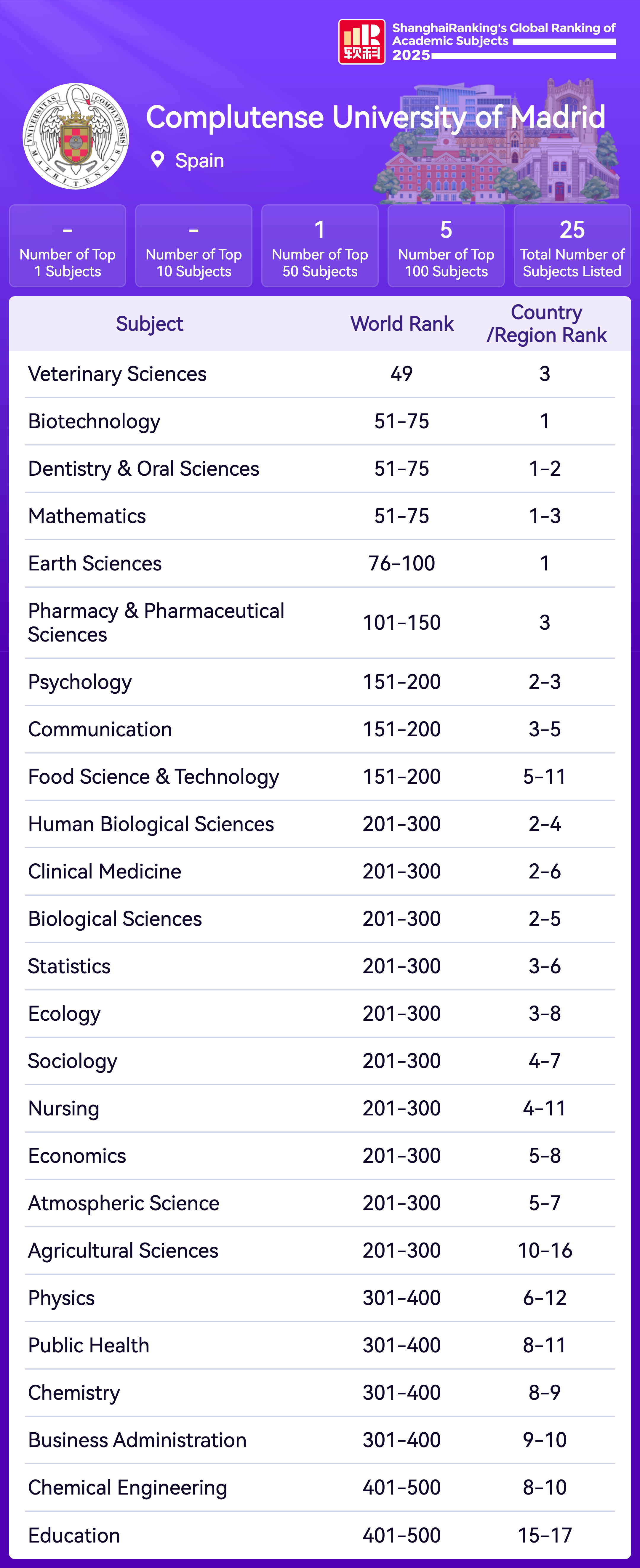 | Subject | Rank |