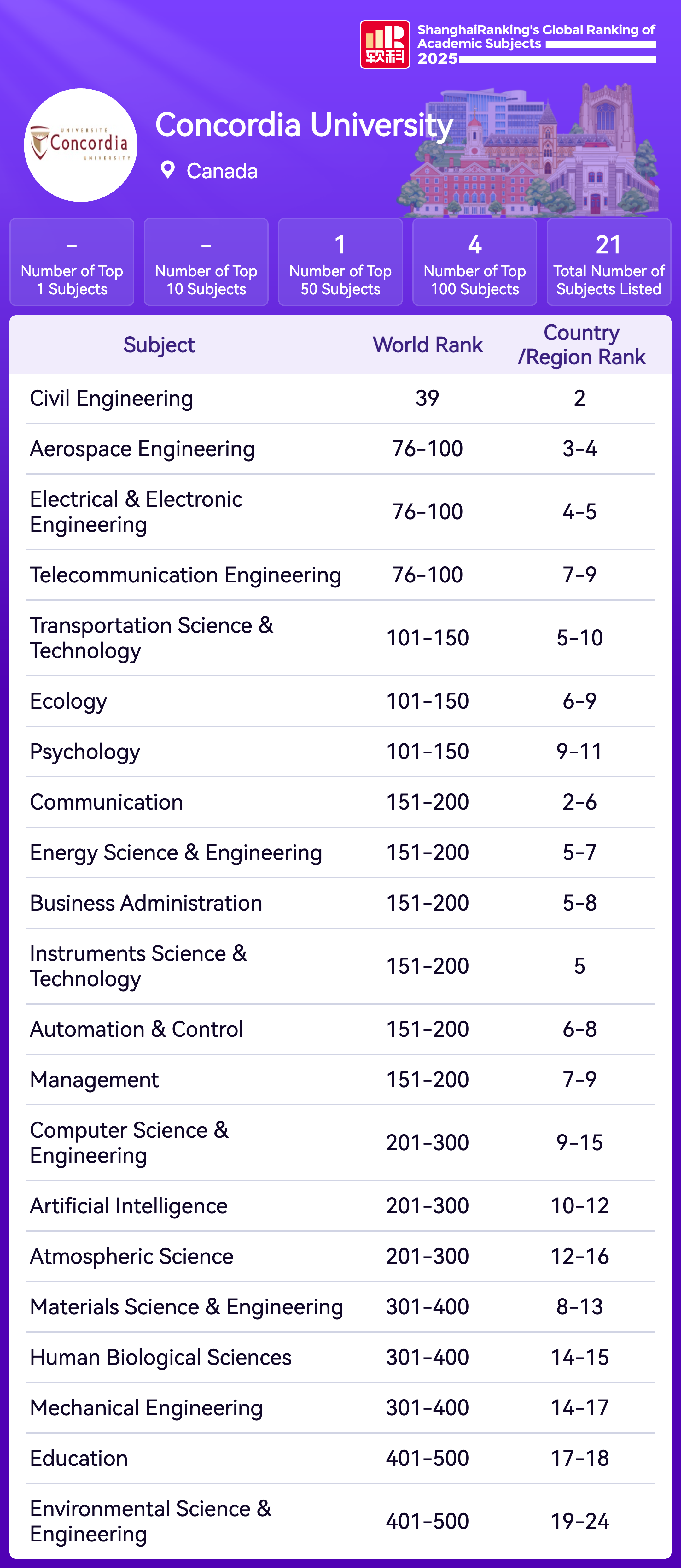 Concordia University is one of North America’s highest ranked universities founded in the last 50 years. Highly innovative, nimble and forward-thinking Concordia defines and delivers next-generation teaching and research. We are a dynamic community of faculty and students who research, create, teach, and engage across and beyond disciplines making us an international destination for leading thinkers. Open and engaged we encourage students to become active, critical and global citizens. Deeply connected to Montreal and the world at large, we are a popular choice for students across all major disciplines. This year more than 50,000 students have chosen to study at Concordia. Globally, we have more than 200,000 graduates. Concordia’s Sir George Williams Campus is in Quartier Concordia, a vibrant downtown Montreal neighbourhood. The downtown campus is home to the John Molson School of Business, the Engineering and Computer Science and Visual Arts Building, the Grey Nuns student residence and several other important labs and study spaces, including a newly transformed library. The Loyola Campus, in Montreal’s west-end, houses a modern science complex and a communication studies and journalism building as well as two state-of-the-art research facilities: the Centre for Structural and Functional Genomics and the PERFORM Centre (Prevention, Evaluation, Rehabilitation, FORMation) dedicated to researching better health through prevention. The university has a commitment to accessibility: many courses are available during the evening or on a part-time basis. Our libraries are open 24 hours a day in the fall and winter terms. Academics and research Concordia offers more than 200 undergraduate and graduate programs, as well as over 30 postgraduate programs. Across our four Faculties, research-creation and teaching take a wide spectrum approach to social issues, industry needs, cultural diversity and science and technology. Concordia’s researchers are making major contributions to new knowledge and shaping the next generation of leaders through interdisciplinary approaches to teaching and research. Special areas of focus include aerospace, health, biotechnology, information security, and smart buildings and resilient cities. Faculty of Arts and Science: We have received international recognition for our programs and research in education, communication studies, journalism, human rights, exercise science, psychology and genomics. The Faculty is also renowned for the small classes and interdisciplinary nature of its six schools/colleges: Liberal Arts College, Science College, Loyola College for Diversity and Sustainability, the School of Community and Public Affairs, School of Irish Studies and the Simone de Beauvoir Institute. Gina Cody School of Engineering and Computer Science: Key programs focus on energy, environment and infrastructure; aerospace and transportation; nanotechnology and materials; and information security and telecommunications. All Bachelor of Engineering programs at Concordia are accredited by the Canadian Engineering Accreditation Board. Concordia ranks among the top 10 engineering schools in Canada, according to Macleans 2019 program rankings. Faculty of Fine Arts: We make things happen that matter. Disciplines include digital and cinematic arts and interactive media, electronic textiles and gaming. Students can specialize in the visual and performing arts in such areas as art history, contemporary dance, design, film production, music, theatre and studio arts. John Molson School of Business: Accredited by the Association to Advance Collegiate Schools of Business (AASCB), the School of Business offers undergraduate and graduate programs. Accountancy and finance are in high demand and notable areas of research include sustainability, family business, entrepreneurship and women in leadership. Unique graduate-level programs include the Kenneth Woods Portfolio Management Program and the Goodman Investment Management Program. Students can also take non-credit courses and seminars through our Centre for Continuing Education.
