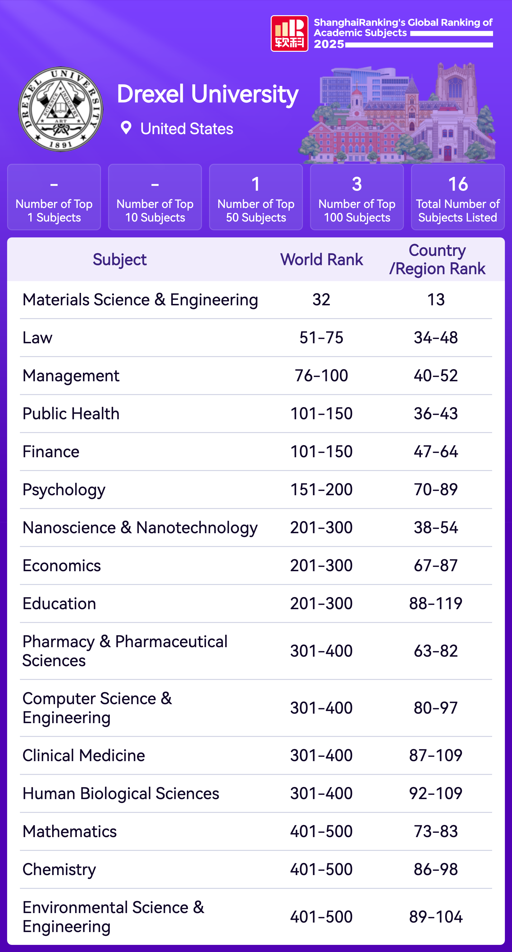 | Subject | Rank |