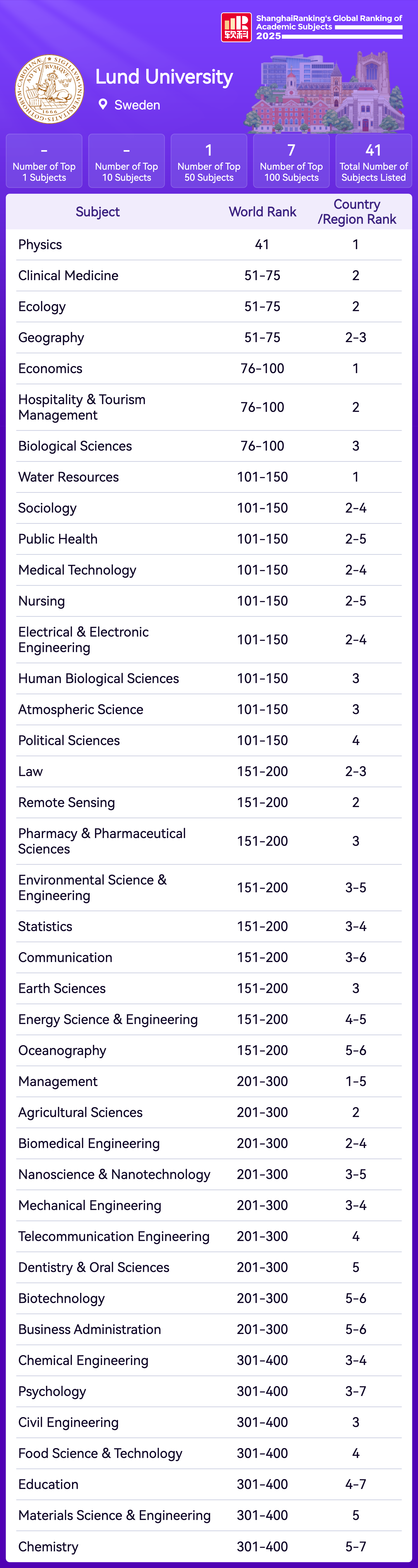 | Subject | Rank |