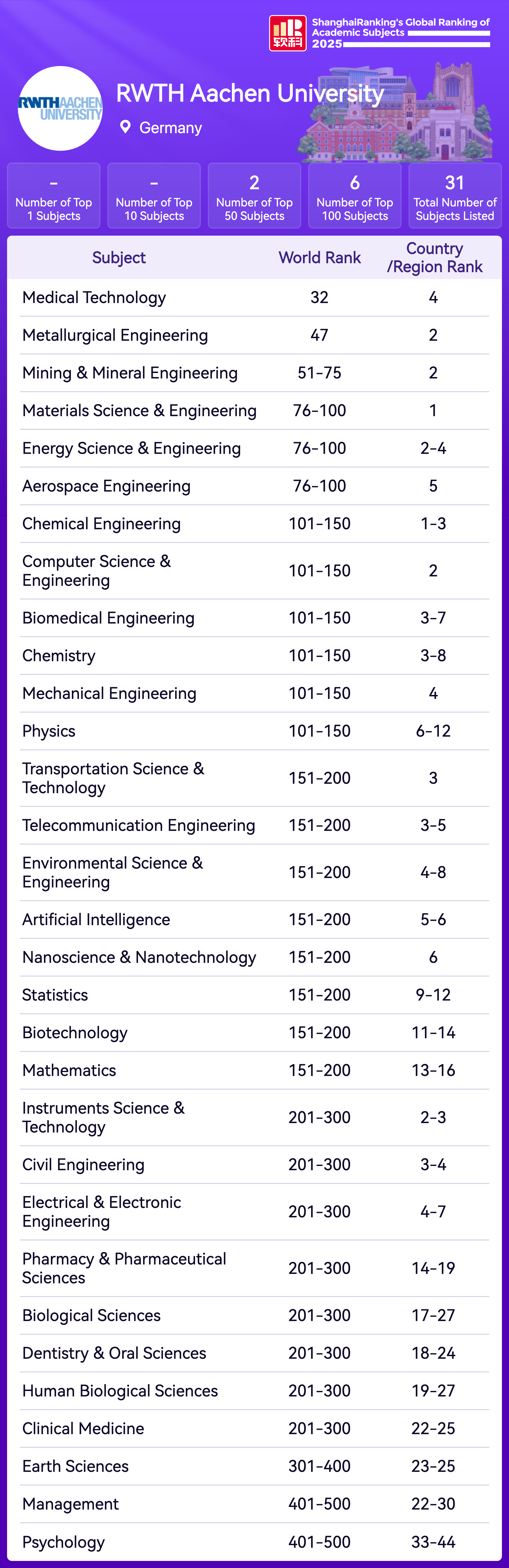 | Subject | Rank |