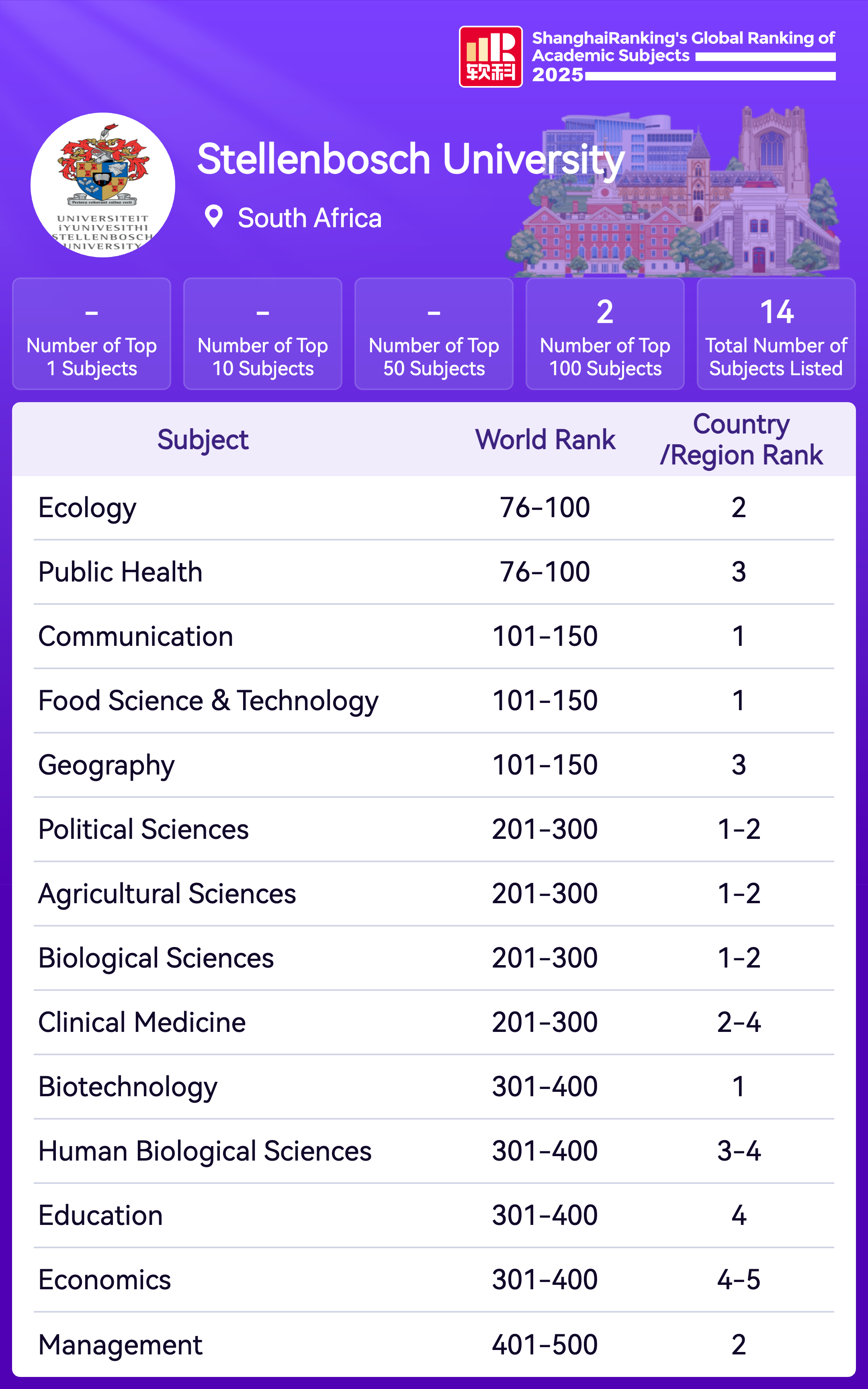 | Subject | Rank |