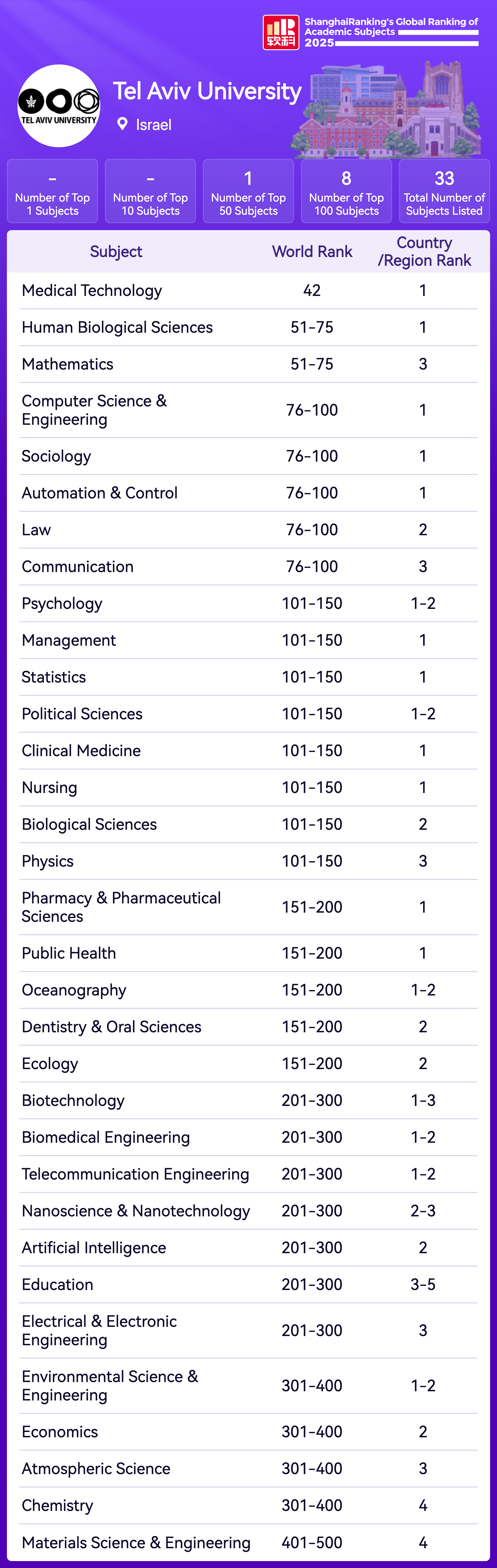 Description In just six short decades of existence, Tel Aviv University (TAU) has evolved into Israel’s most diversified, influential and global institution of higher learning and research. It offers 125 schools and departments across the spectrum of sciences, humanities and arts; Israel's biggest biomedical research and teaching complex; and 130 research centers. At TAU we embrace the pursuit of the unknown. Our faculty, students and graduates are encouraged to set their imaginations free. It is thus no coincidence that TAU ranks among the top 10 schools in the world for producing successful startup founders, and places first in Israel among the Top 100 Innovation Universities globally. Mission Statement What if we could create a self-regulating bionic heart? A vaccine against cancer? A revolution in digital learning? Truly viable solutions to sustainable fuel, smarter cities or food security? An ethics of cyber? Algorithms for creativity? Asking these and other intriguing questions drives the Tel Aviv University community; we quest after multifaceted solutions to the complex issues of today. Our main activities include generating discoveries across the spectrum of sciences, humanities and arts; offering wide-ranging study and training programs at 125 schools and departments; fostering an innovation ecosystem that powers economic and cultural development; translating discoveries into real-world products that improve quality of life; promoting social leadership through community outreach and enrichment programs; and collaborating with academic, industry and government partners nationally and globally. TAU also runs dozens of scholarship programs that increase access to a world-class university education for young Israelis from outlying and economically distressed cities and from minority groups, as well as for students from developing countries in Africa, Eastern Europe and Asia.