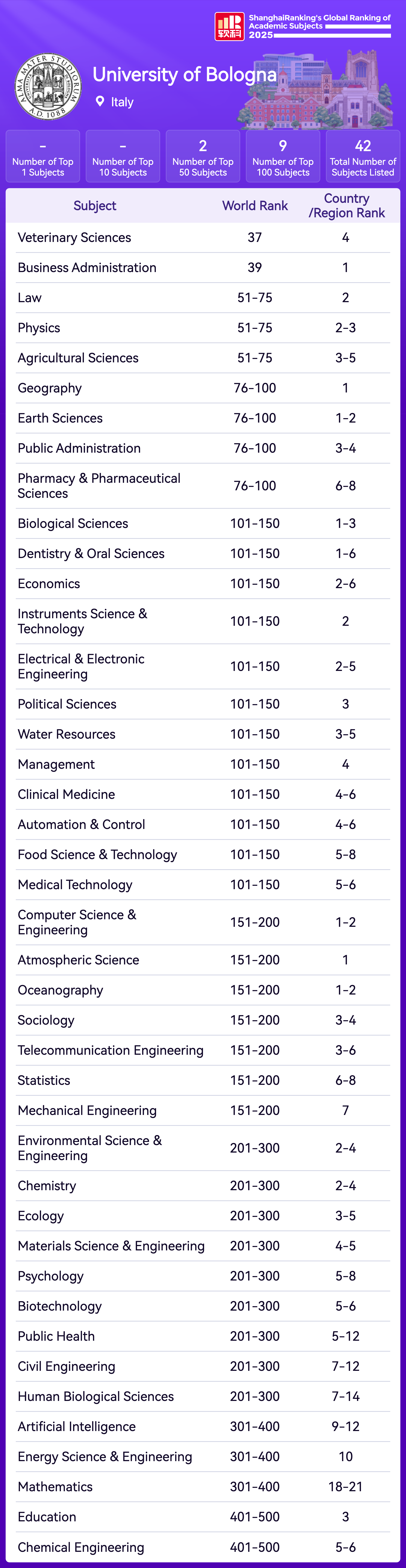 History and Identity Alma Mater Studiorum: the first university in the Western world The University of Bologna has ancient origins, and is considered to be the oldest university in the Western world. 1088 is the year in which by convention the University of Bologna is considered to have been founded, when law began to be taught freely in the city. Founded by students and for students, the Alma Mater Studiorum immediately attracted young scholars from all over Europe, bringing to life the ideal of the universality of knowledge and culture it still pursues today, also through its increasing focus on internationalisation. The University of Bologna was home to illustrious students including Petrarca, Boccaccio and Dante Alighieri, and a laboratory for many famous academics studying in its different schools - from law to medicine, from the arts and philosophy to mathematics and science. Over the centuries it has developed to carve out and maintain a central role in forging knowledge for the society of the future. The University's key role in world culture was confirmed in 1988, on its nine hundredth anniversary, when the Rectors from 430 universities from every continent met in Bologna to undersign the Magna Charta Universitatum Europaeum, formally recognising the University of Bologna as the Alma Mater of all universities. The Magna Charta, currently signed by 752 Rectors from 81 countries, underlines the autonomy of universities and the essential link between teaching and research, transcending the limits imposed by “any geographical and political border”. Again, in 1999, in the University's Aula Magna, 29 European Ministers of higher education signed the Bologna Declaration which led to the start of an important – and ongoing - process to build the European Higher Education Area. The aim is to promote European Higher Education throughout the world, increasing competitiveness and international collaboration. Today the Alma Mater is an autonomous, non-denominational, pluralistic public institution whose primary aims are research and teaching, indissoluble activities which pursue critical knowledge that is open to dialogue and interaction among cultures, respecting the freedom of science and teaching. The Alma Mater sets out to be a natural environment for knowledge, interpreting and orienting the transformations of its time, guaranteeing the processing, innovation, transfer and enhancement of knowledge for the advantage of both individuals and society as a whole. Values and Future Freedom, merit, excellence, internationalisation The University of Bologna promotes and safeguards the respect for basic human rights, a primary value for the whole university community. The recognition of merit and the pursuit of excellence are priority criteria that guide the development strategies and choices of the Alma Mater. Students enrolling at the University of Bologna have a wide range of choices, in terms of both study programmes and the choice of university campus. The Alma Mater has been a multicampus university since 1989, the Bologna campus working together with other campuses in Cesena, Forlì, Ravenna and Rimini. Each campus is an integral part of its host city, offering facilities and services which accompany students throughout their university life, not only in their studies but also in cultural activities, sports and other forms of associations. The quality of teaching is closely linked to the quality of research, and research plays a key role in the future of new generations and society generally. This profound belief underlies all the activities of the Alma Mater, which also include the skilful sourcing and use of national and international funds and the creation of strategic alliances with both institutions and the business world. At the University of Bologna, internationalisation has been considered a strategic tool for many years. Its international dimension lies in both its history and its vocation: the inauguration of the Studies Center in Buenos Aires in 1998 and, more generally, the opening of research and learning programmes to foreign countries, the establishment of and participation in international networks and consortia, both incoming and outgoing mobility for students and scholars (which places it at the top of the European league tables), demonstrate the University's ability to dialogue with the most qualified international scientific and cultural institutions. The Alma Mater places great attention on its organisation and works to assure the constant improvement of its processes, welcoming the challenge of combining large numbers with quality. A long-standing promoter of relations with civil society, the institutions and businesses, and a driving force in the economic and cultural growth of the territory it operates in, the University actively contributes to the well-being of society and the increased competitive performance of the production system of the whole country. Teaching Quality by vocation The Alma Mater is a place where knowledge is processed, transmitted and learned. An educational vocation which, since its foundations, has led to the definition of learning pathways focusing on the acquisition of critical skills and methodological rigour using a multitude of methods and disciplines. Today the University offers a wide and diversified, cosmopolitan and rigorous range of study programmes designed to promote students' personal, cultural and professional growth, through the transfer of the results of its research, also meeting the demands of a complex, open society. More than 2,800 professors work with more than 87,000 students fromItalyand other countries: a community working together on degree programmes, first and second level Professional Master's, PhDs, specialisation schools, post-graduate and lifelong learning programmes and summer and winter schools. Internationalisation is a quality feature of all teaching programmes at the Alma Mater, contributing to the p