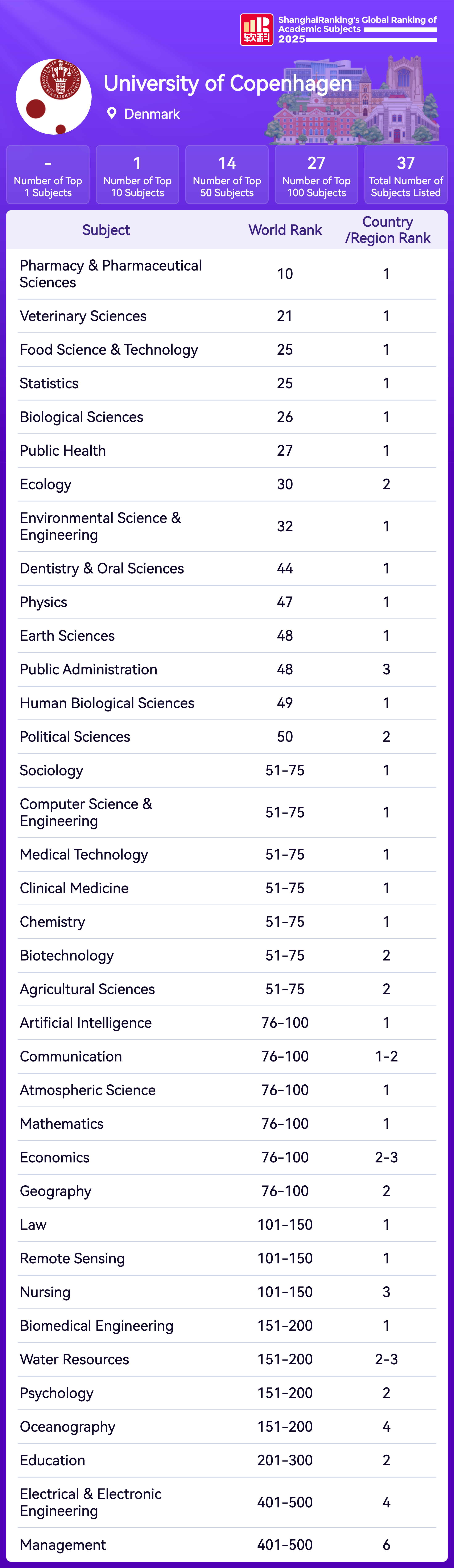 With over 40,000 students and more than 9,000 employees, the University of Copenhagen is the largest institution of research and education in Denmark. The purpose of the University – to quote the University Statute – is to ’conduct research and provide further education to the highest academic level’. Approximately one hundred different institutes, departments, laboratories, centres, museums, etc., form the nucleus of the University, where professors, lecturers and other academic staff, as well as most of the technical and administrative personnel, carry out their daily work, and where teaching takes place. These activities take place in various environments ranging from the plant world of the Botanical Gardens, through high-technology laboratories and auditoriums, to the historic buildings and lecture rooms of Frue Plads and other locations.