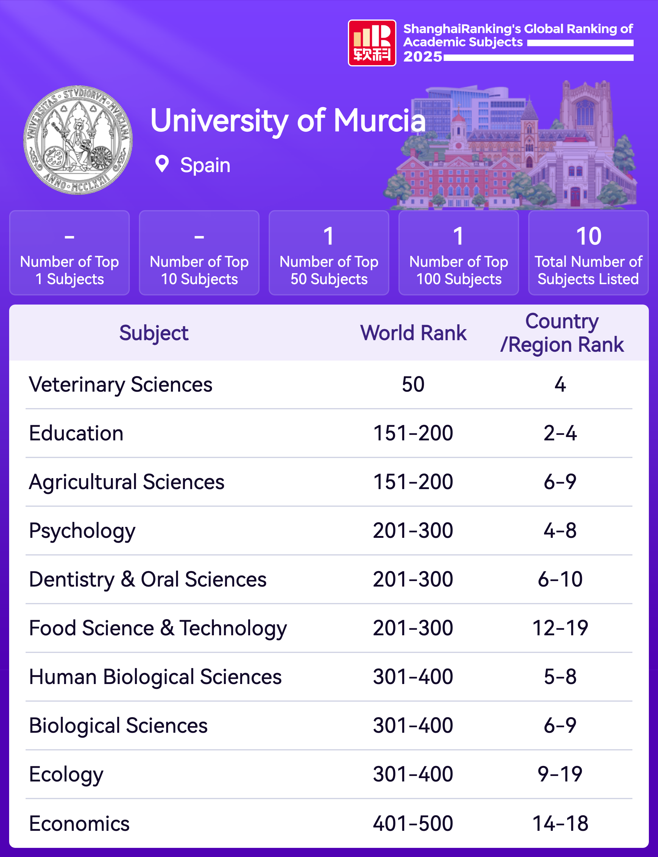 The University of Murcia is a public institution of Higher Education which pursues academic and scientific excellence through an international influence. Its main activities are focused on research, training and cooperation projects, exchange programmes, bilingual education and the promotion of double-degrees. Even though, its origin dates back to the thirteenth century; its establishment dates from 1915, so its first centenary was in 2015. It hosts more than 31.000 students, around 1.000 of them international. The University of Murcia has 5 different campuses. Each one of them has its distinguishing elements, but all of them have the objective of meeting the global needs of the society and those individual needs of the students. La Merced campus is a historical space with an urban character, it is the origin of the university and it is where are the Arts degrees are. Espinardo campus is the place where the greater part of the degree and postgraduate studies and research centers are brought together. Medical and Health Studies Campus is located in Ciudad Sanitaria Virgen de la Arrixaca where the students have direct contact with the community. Thanks to the Sports Sciences campus and the Lorca campus the university is present in different places of the Region. The first one is site for Sports Sciences due to its location near the sea and the second for Health Sciences.