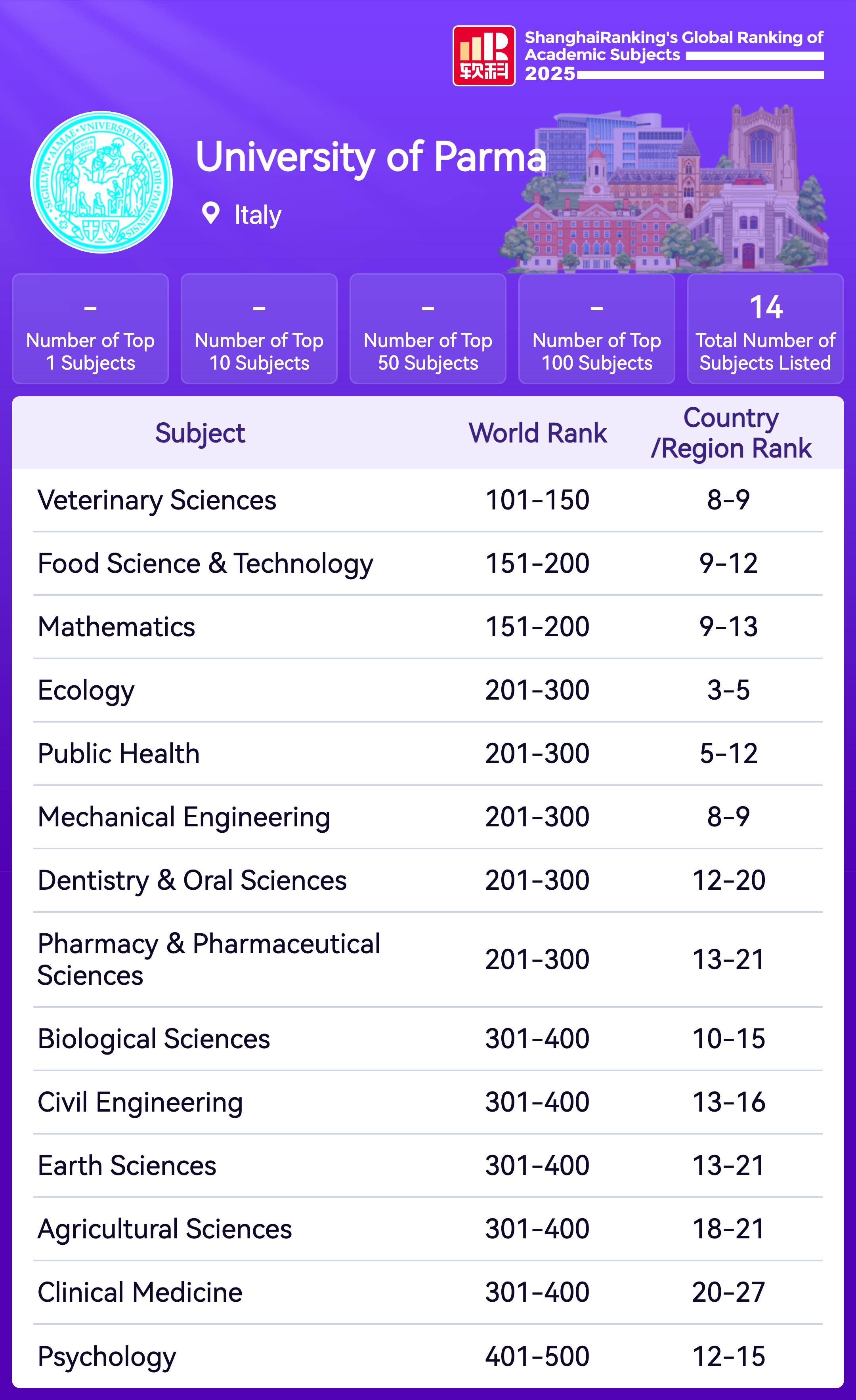 Our mission and our values Our mission We promote knowledge creation, transfer and progress to meet the increasing demand of advanced education and research in our society. Our values We are a scientific community of a long tradition, made up by professors and researchers; we all work in the broader context of the international scientific community. We are an independent forward-looking community, open to the world and to the future. We foster study as a key factor for personal development and individual enrichment. Our aim is to guide and encourage students to make the most of their capacities. We firmly believe in scientific progress and do our best for its enhancement. We give our contribution for the improvement and welfare of our society, through the diffusion of knowledge and educational tools. Services and Facilities · 9 Departments conducting high-quality research and didactic activities in all scientific-disciplinary areas. · A 77 hectare University Campus, considered as a unique example in Italy; the Campus features 4 of the 9 Departments, study areas, libraries, computer and IT laboratories, canteens and sport facilities. · Studying opportunities abroad, thanks to a number of agreements with hundreds of international universities. · Undergraduate and postgraduate traineeships, on-the-job training in different companies and guidance for a better integration into the professional world. · 16 Libraries equipped with study rooms and internet access points, boasting a rich catalogue of more than a half million books. The Library system offers a number of online services accessible from home, including a digital catalogue with electronic journals, online databases and e-books. · Computer laboratories and Wi-Fi areas in all University structures. · Large study rooms in each University building. · Online services to register for exams and manage the bureaucratic aspects of the studying career. · A personal e-mail account for each student, to constantly keep in touch with UNIPR. · The University website www.unipr.it, providing updated information and the latest news on UNIPR. · The University Language Centre, to learn foreign languages at different levels. · Part-time work (150 hours) in University structures · Total or partial exemption from tuition fees, according to merit and/or economic status · Services and support for students with disabilities and learning difficulties · Tutor students helping other students in their academic life · The University Choir and Orchestra, for students wishing to develop their passion for music · Psychological counselling, to help students in difficult situations · An online newspaper and a radio for students willing to develop their creativity in the communication field · Top-level sport activities, courses and cutting-edge sport facilities managed by CUS Parma (University Sports Centre)