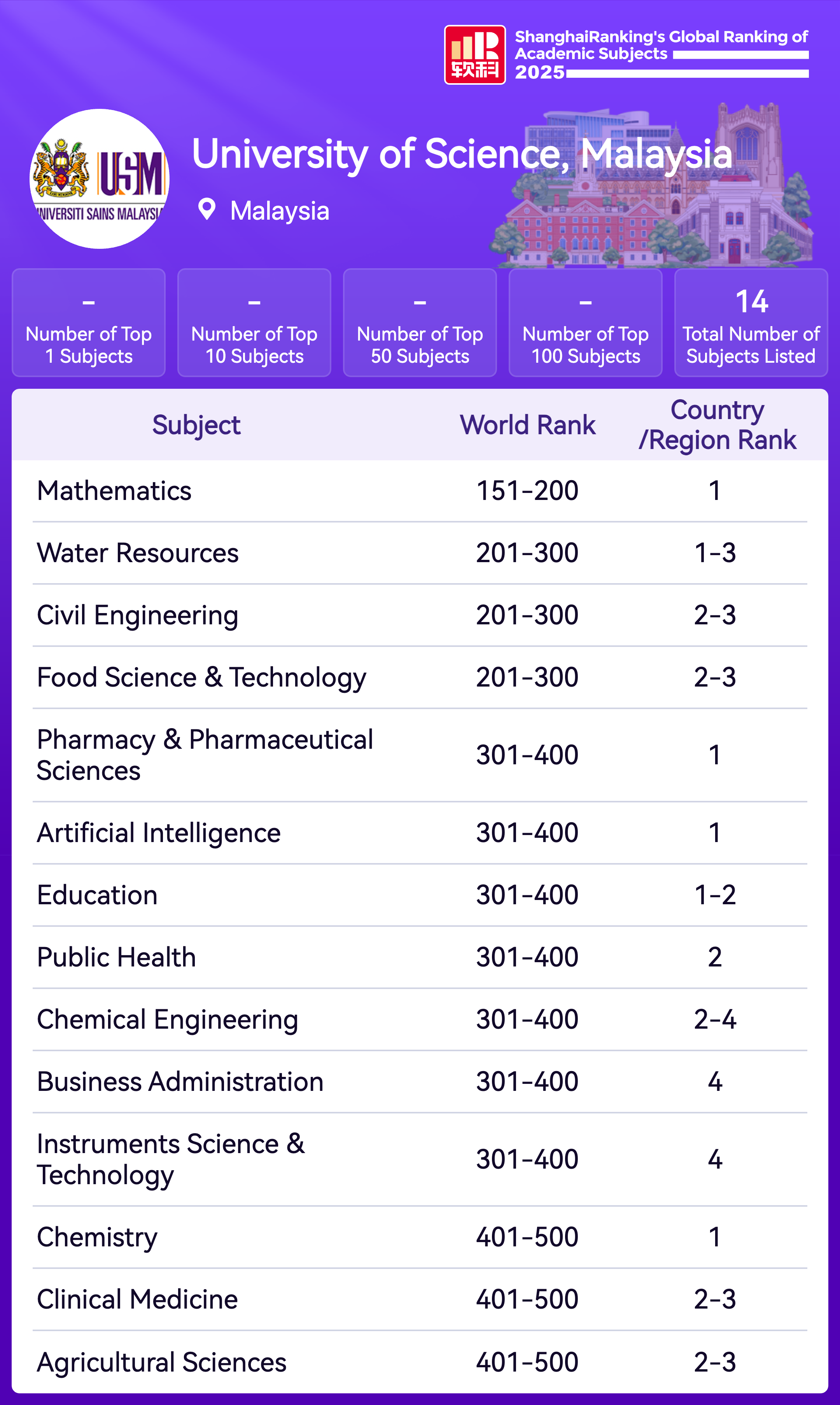 The Academic Ranking of World Universities (ARWU) is recognized as the precursor of global university rankings and the most trustworthy one. ARWU presents the world's top 1000 research universities annually based on transparent methodology and objective third-party data.