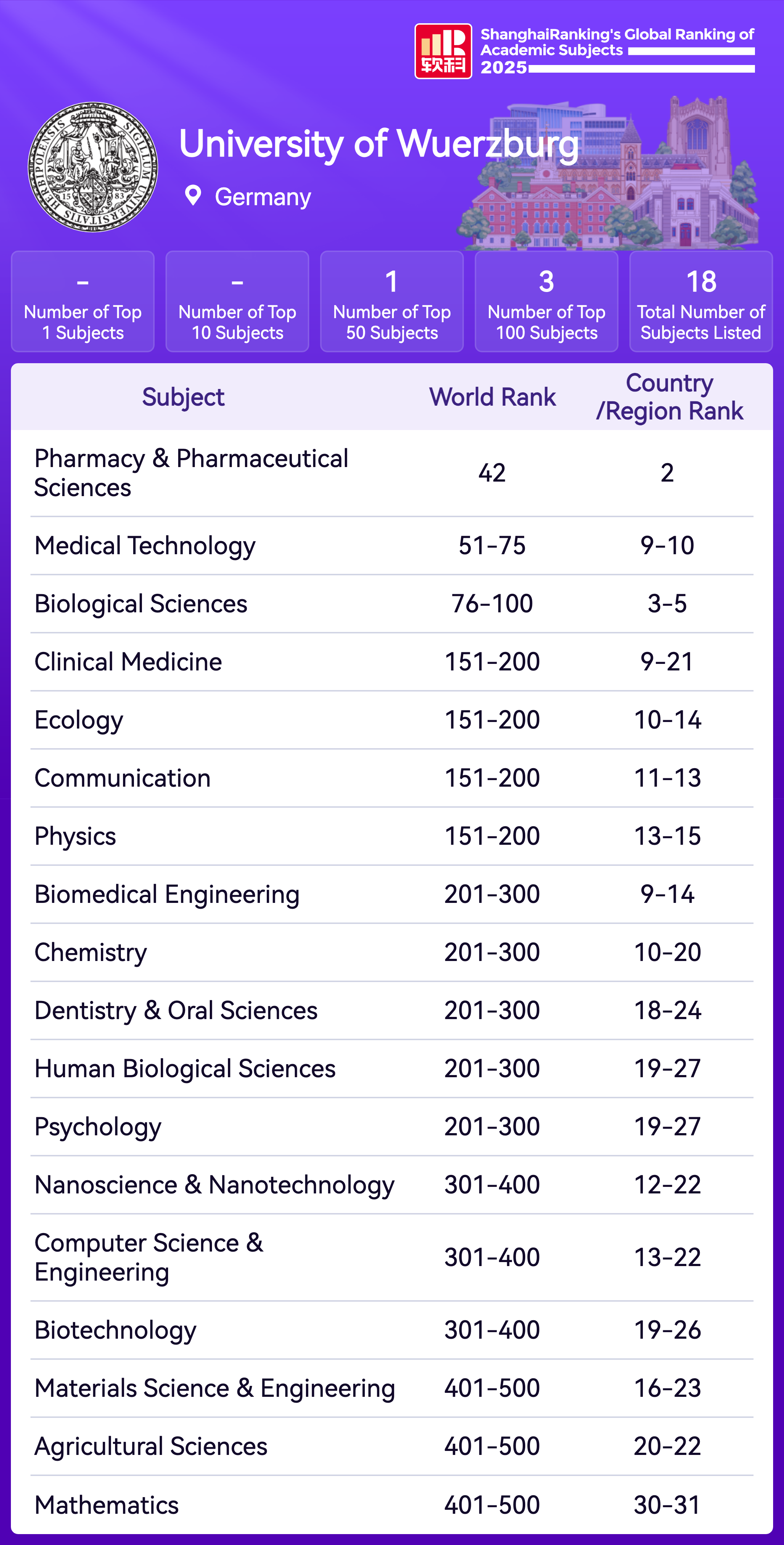 Julius Maximilian University of Würzburg (JMU), founded in 1402, is one of the oldest German universities with a long tradition in research and teaching excellence. It is currently home of more than 400 professors and almost 28 000 students. Würzburg is a city encircled by vineyards, nestled in a curve of the river Main. Its 1300 year history draws hundreds of thousands of tourists each year, all captivated by the rich cultural heritage and beautiful landscape. Our university is deeply rooted in the region, but at the same time our research and teaching activities have led to achievements of global significance. 14 Nobel Laureates as well as many other eminent scholars and scientists, among them Wilhelm Conrad Röntgen, who discovered the X-rays in 1895, have researched and taught in Würzburg. Harald zur Hausen received the Nobel Prize in Medicine in 2008 for discovering that viruses trigger cervical cancer. The university offers more than 100 subjects in ten different faculties, comprising the humanities, law and economics, social and natural sciences, life sciences, medicine and selected areas of engineering. We are committed to continuing excellence in research and teaching across all branches of science. In addition to the ‘classic’ subjects, the university also offers many new degree programmes. The most recent ones are Nanostructure Technology, Functional Materials, Biomedicine, Modern China, Digital Humanities, Media Communications, Human Factors in Computing Systems and Museology – to name but a few. We prepare our students for careers in a wide range of fields. In this context, we closely coordinate our teaching with our current research activities and regard the promotion of junior academics as an essential responsibility. The establishment of several Graduate Schools in 2004 constituted a milestone in this endeavour. Moreover, as early as in the 1990s, the University of Würzburg began founding cross-faculty research centres, opening up new research fields and possibilities for innovative degree programmes. These interdisciplinary centres have become an internationally prominent trademark of the University of Würzburg and show our commitment to strengthening interdisciplinary research and cooperation. Gaining insights into all scientific disciplines and sharing these with students, research professionals and the general public is what JMU considers one of its main tasks. We are convinced that we must never forget our responsibility towards society. Thus we strive to make a contribution to fostering academic freedom, intercultural exchange and the generation of new knowledge by means of partnerships with universities from all over the world.