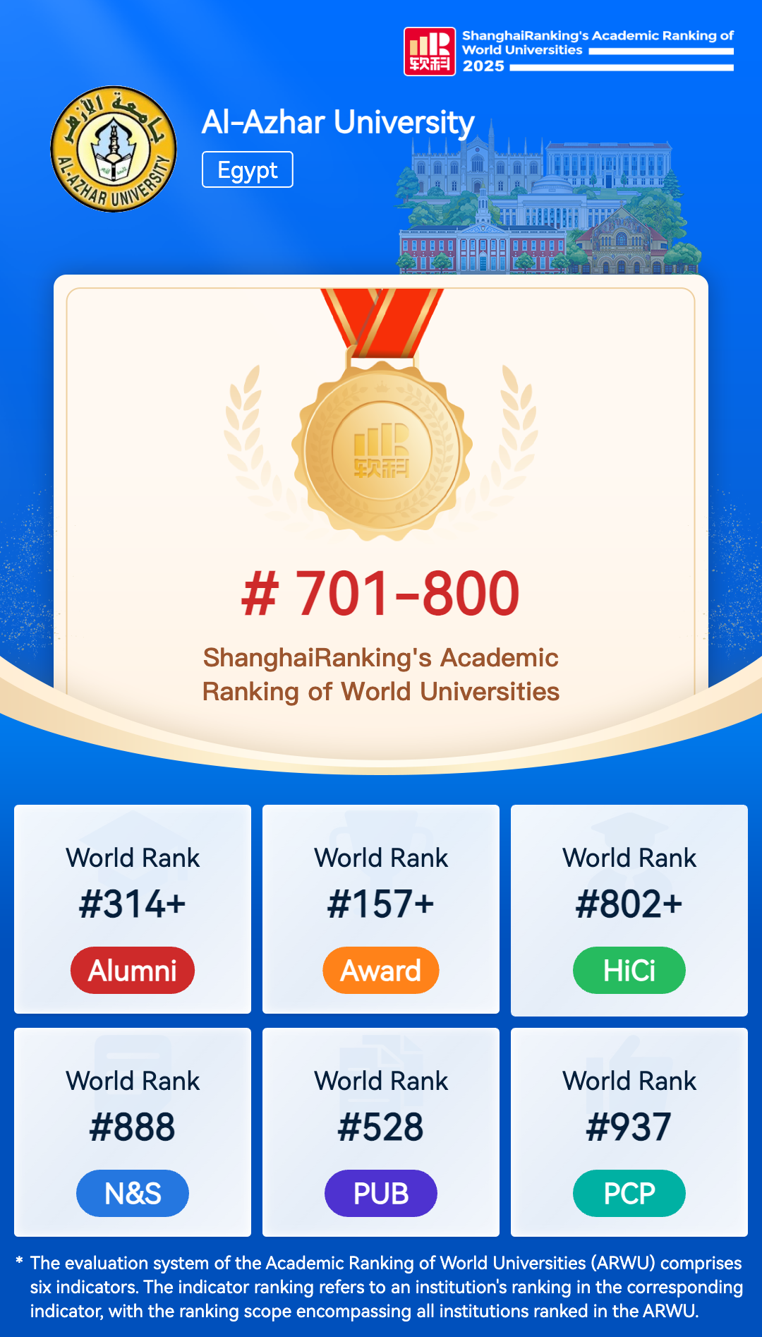 The Academic Ranking of World Universities (ARWU) is recognized as the precursor of global university rankings and the most trustworthy one. ARWU presents the world's top 1000 research universities annually based on transparent methodology and objective third-party data.