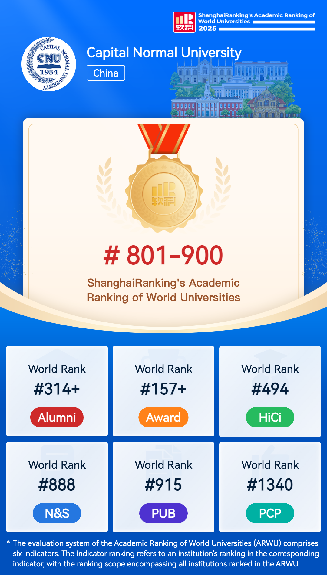 Founded in 1954, Capital Normal University is one that covers literature, science, industry, management, laws, education, foreign languages and arts. It is one of the most important universities of Beijing Municipality and the Ministry of Education, an academy built by “the joint efforts at the provincial and ministerial levels”. As one of the important bases of the municipality to provide and train qualified teachers and other talents needed for the great causes of Four Modernizations, CNU (Capital Normal University), since its founding, has trained, over the past 61 years, over 100,000 highly qualified people for all kinds of fields.Down the road, CNU will be striving for its creative originality in building it into a higher level of normal university with its own characteristics.