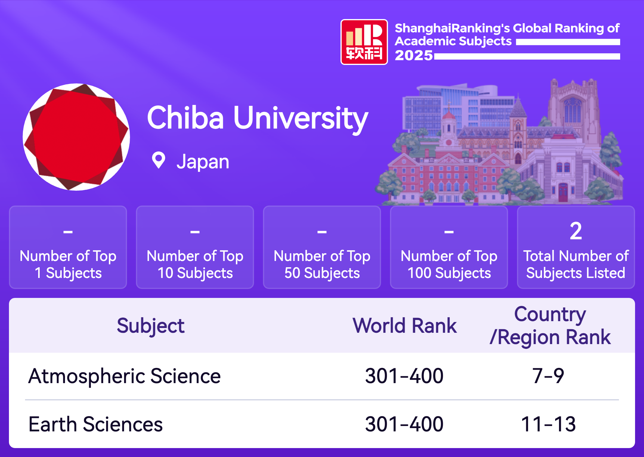 Chiba University was founded about 150 years ago, and has been taking great effort to provide the best curriculums and environment, as well as conducting world level research in upgrading the university status. Based on the University Charter, ‖Always Aim Higher‖, Chiba University will foster human resources with the knowledge of liberal arts, specialized subjects, professional skills, and the ability of solving problems.Chiba University has 10 faculties with about 10,500 students and 15 graduate schools with about 3,500 students. Chiba University has about 510 partner institution agreements in 49 countries, conducting about 280 international joint research projects in 47 countries, and accepting about 2,000 international students annually. Chiba University is constantly developing education and research programs, expanding various international activities all over the world, aiming to become a world class university.