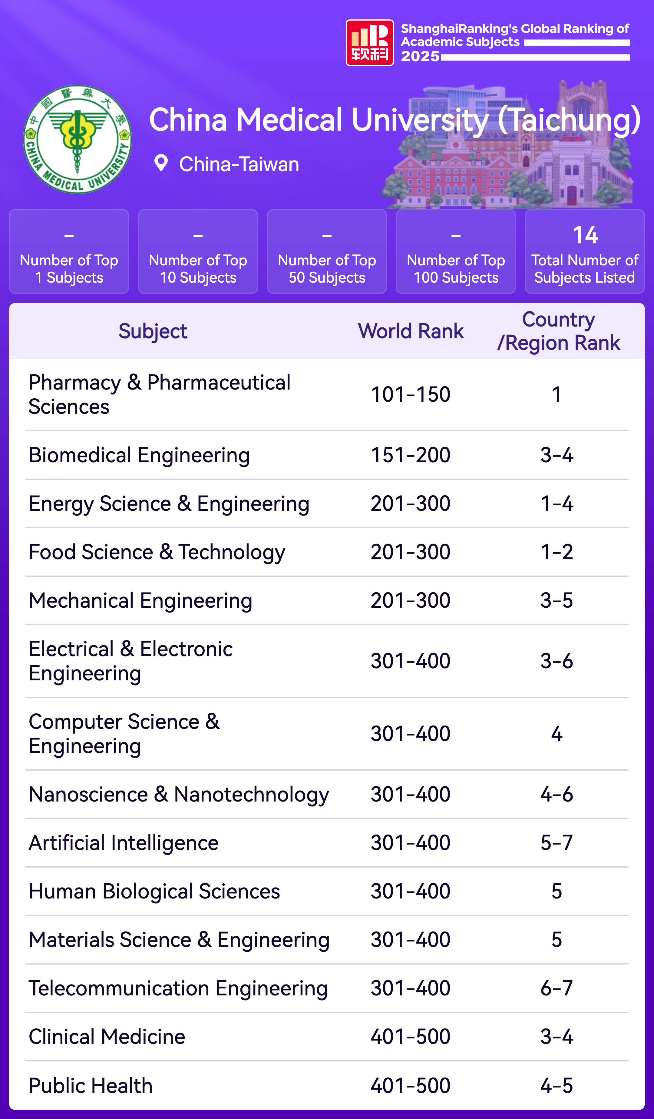 Pharmacy & Pharmaceutical Sciences | 101-150 |