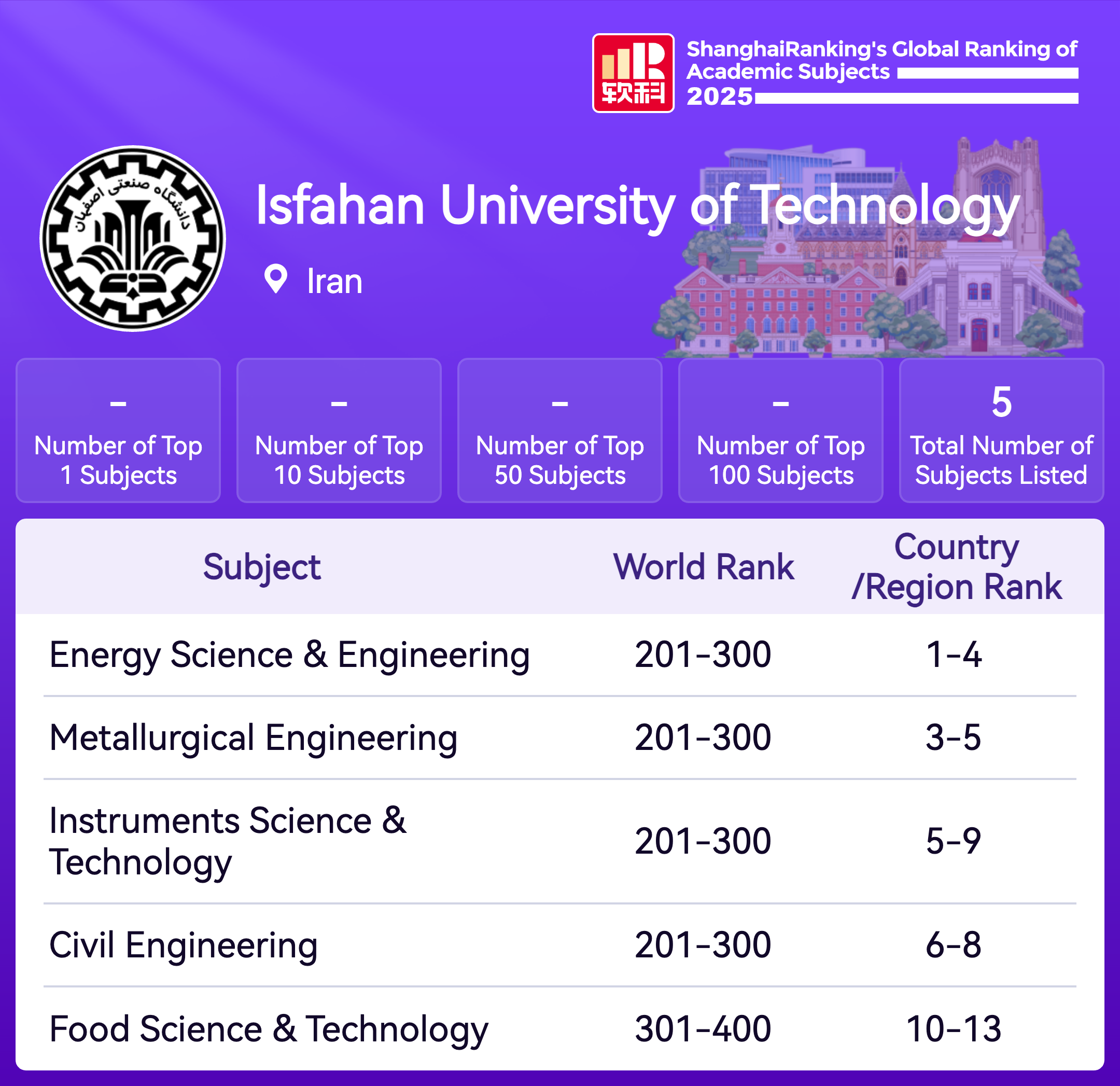 Isfahan University of Technology (IUT) is a young university located in the heart of industrial complexes provided an opportunity to strengthen industrial enhancement of our country. Pleasant environment in the province of Isfahan all year round has created an excellent atmosphere for agricultural productivity and university plays a major role in increasing productivity,research and development. During its 39 years of history, hard working faculty and administrators have turned this institution into a highly competitive learning and research institution that is well recognized both locally and internationally. IUT as an institution of higher education was established with the aim of satisfying the need to educate the youth in the central part of Islamic Republic of Iran, in service of its people, and in the advancement of knowledge. Currently, IUT has more than 9000 students of which about 4400 are involved in post graduate programs. IUT is comprised of the College of Agriculture and fourteen departments including different branches of Engineering, Basic Sciences and Natural Resources. All of our departments encompass relevant areas of teaching and research. We are fortunate to attract high quality students from all over the country. Many of our graduates take part actively as managers or engineers in the advancement of Iran.