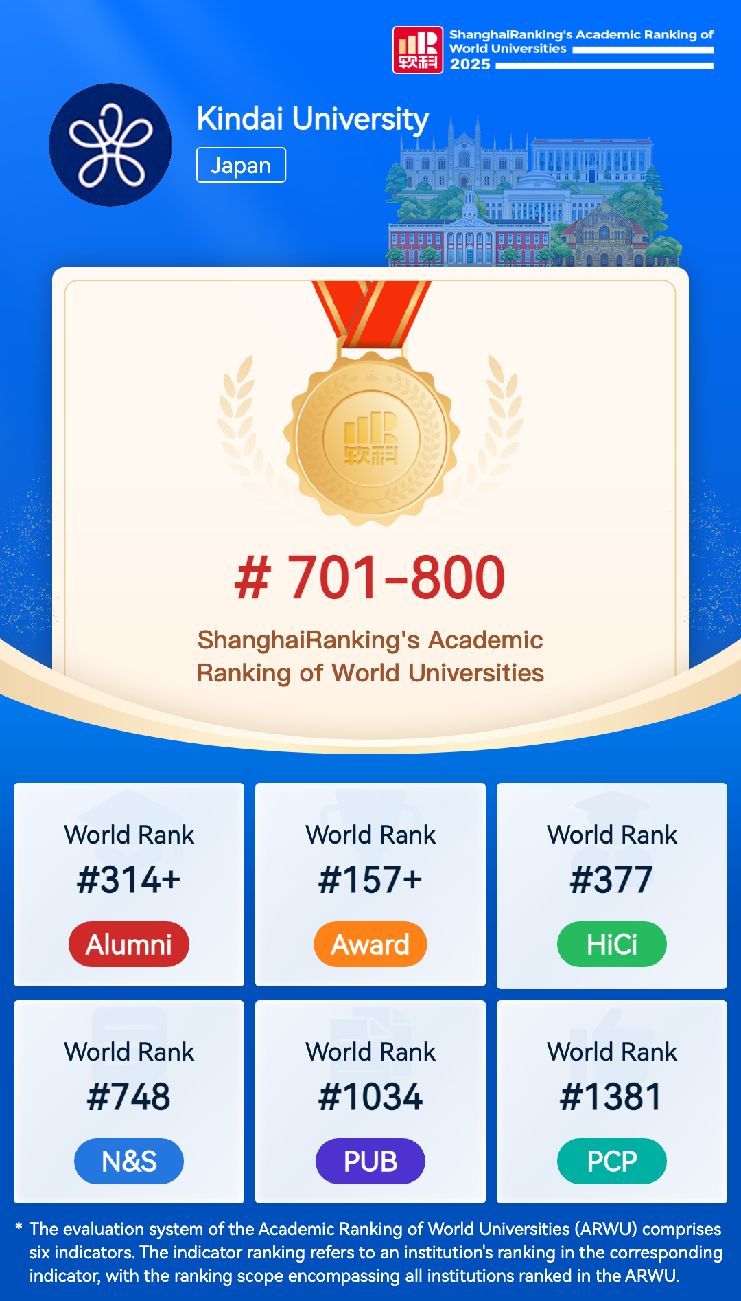 Kindai University was founded in 1925 with its principle mission to conduct research and provide education relevant to the real world. Today, with over 30,000 students and over 6,000 faculty members on six campuses in and around Osaka, Japan’s second largest city, and in other parts of the country, Kindai University is widely recognized as one of Japan’s leading research institutions. Kindai University is comprised of 14 faculties with 48 departments, 33 of which are science-based. In addition to the academic faculties and departments, the University supports 18 research facilities, which include the Fisheries Laboratory, the Atomic Energy Research Institute, and two affiliated hospitals, which treat over a million patients per year, and function as central medical institutes for the Kinki region of Japan.