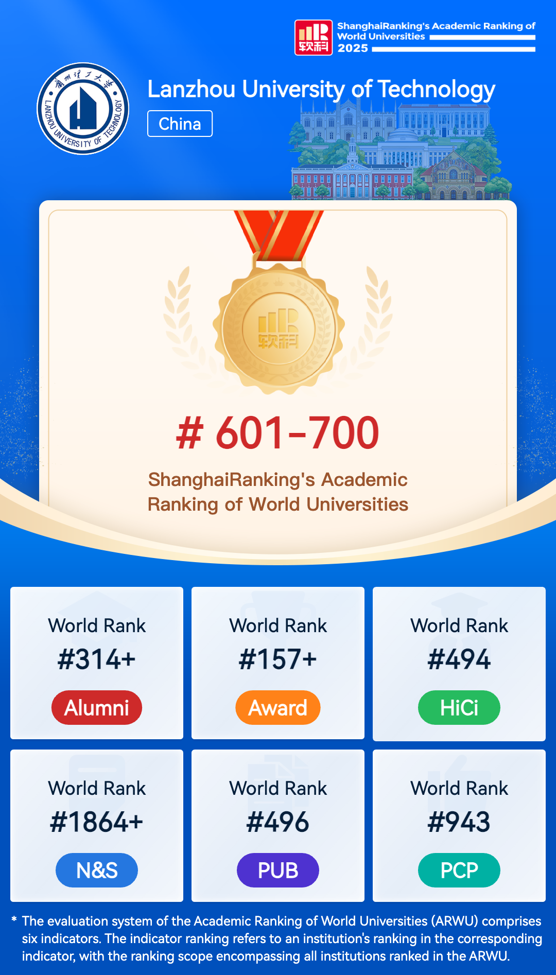 The Academic Ranking of World Universities (ARWU) is recognized as the precursor of global university rankings and the most trustworthy one. ARWU presents the world's top 1000 research universities annually based on transparent methodology and objective third-party data.