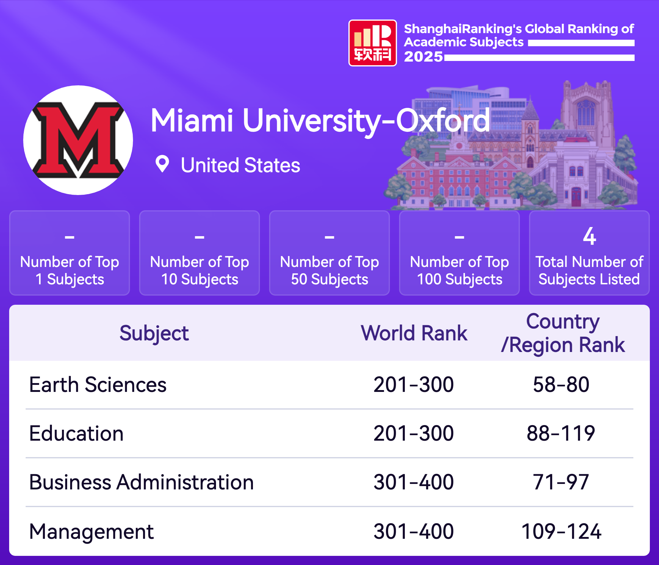 Miami University, an original Public Ivy, provides a rigorous academic experience in the quintessential college town of Oxford, Ohio. Founded in 1809, the university is located in the Miami Valley region of Ohio and is proud of the ties it maintains with the Miami Tribe, now located in Oklahoma. Here, high achieving, intellectually curious students prepare for success as they are given the opportunities of a large research university while experiencing the personalized teaching, attention, and sense of community found in the nation’s best small, liberal arts colleges. A public university, Miami offers a wide range of academic programs. The bachelor's degree is offered in more than 115 areas of study in Oxford, the master's degree in 67 areas; doctoral programs are also available in 12 disciplines. At the school’s regional campuses, 18 bachelor’s majors and 11 associate’s degrees are also offered. Dedicated to fostering an environment of engaged learning for more than 200 years, Miami faculty guide undergraduate students in conducting significant research, facilitating projects with real-world clients, and developing the leadership skills top employers seek most. With a long-standing commitment to global learning, complete with a European center in Luxembourg, Miami University is ranked first nationwide among public doctoral institutions for its percentage of undergraduate students studying abroad. With opportunities in more than 90 countries, Miami students and faculty understand the value of gaining a global perspective and seize the many opportunities to further develop cultural competencies. While providing students with a transformative and unforgettable collegiate experience, Miami is also uniquely dedicated to student success – including timely degree completion and career preparation. Miami’s four-year graduation rate is 21st best among public universities in the U.S. and students are accepted into medical and law schools at rates far above the national averages. Nearly twice as many employers recruit at Miami as at comparable universities and four times as many on-campus interviews are conducted than at peer institutions. Miami is regularly cited by national publications as a “best value” in higher education. Additional recognition as having a high return on tuition investment is supported by surveys and national data indicating that 96.6 percent of Miami students who graduated in 2015-2016 were employed or continuing their education by fall 2016. The Oxford campus encompasses more than 2,000 acres. With its distinctive modified Georgian architecture, it is widely regarded as one of the most beautiful campuses in America. The beauty has been maintained and the school’s carbon footprint reduced while Miami has efficiently constructed and renovated several academic buildings, residence and dining halls, as well as its student-managed Armstrong Student Center. Enrollment is approximately 17,000 undergraduates and 2,400 graduate students; an additional 5,100 students are enrolled at Miami's regional locations in Hamilton, Middletown, and West Chester, Ohio.