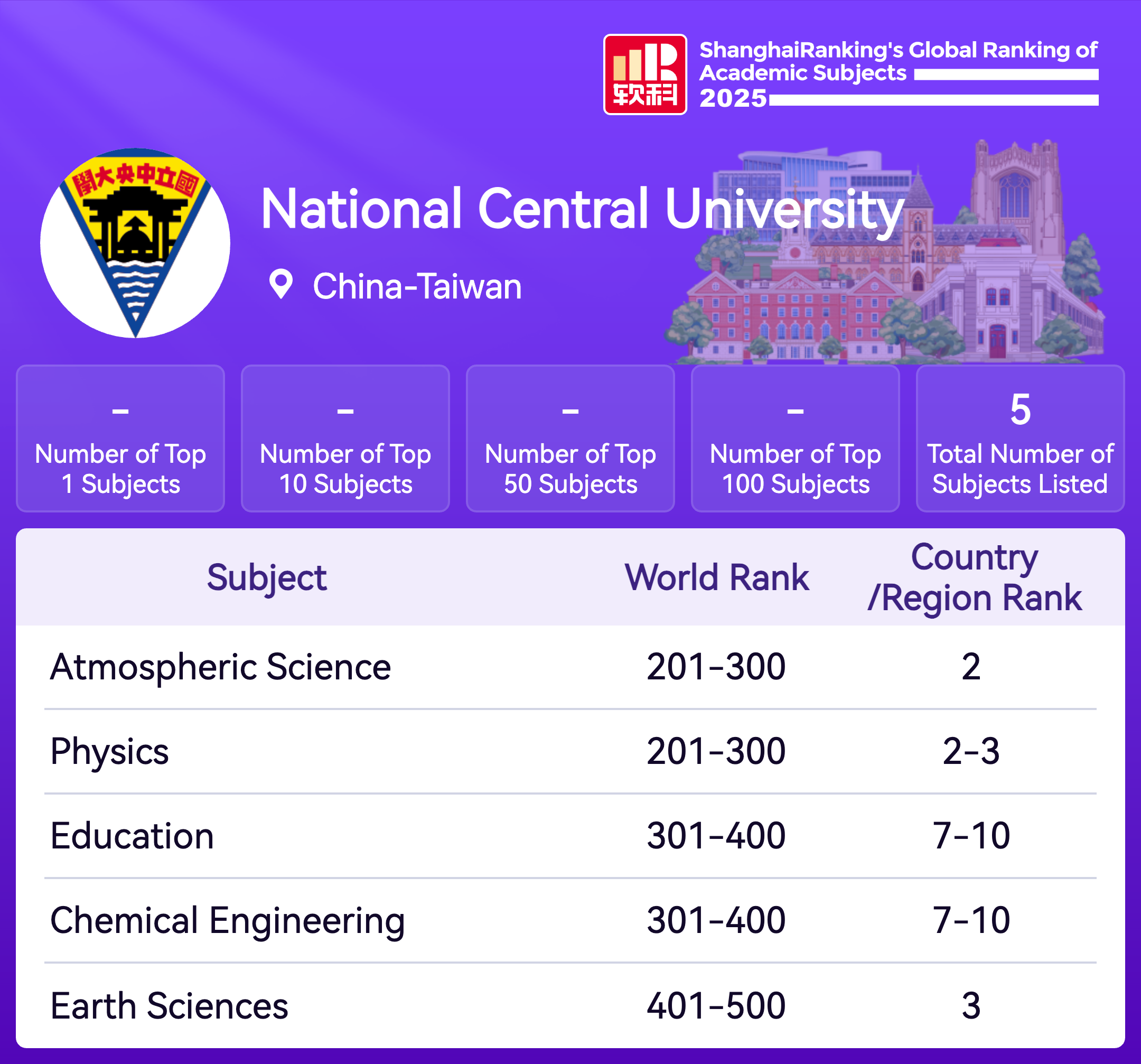 National Central University (NCU) is a university with long-standing traditions in Taiwan. Founded in Nanjing in 1915, and was reestablished in Taiwan in 1962, becoming one of the top universities in the country.Located in Zhongli, NCU covers an area of 62 hectares. We have approximately 12,000 students, 8 colleges, 25 departments, 20 graduate institutes, 8 university-level research centers, one united research center, the Office of Teaching Centers and the affiliated Zhongli Senior High School. NCU is truly a comprehensive university which combines rich science and humanistic facilities. The era develops and changes rapidly; the cultivation of talents’ key capabilities has become our biggest challenge. In addition to spreading knowledge, NCU channels its academic energy to local development to effectively shoulder its social responsibilities and displays its values and functions of a university. NCU is a student-centered university that gives consideration to education of liberal arts and specialization in professions. We endeavor to empower our students with professional capabilities, to develop creative teaching and learning modes, and to help teachers get involved more proactively. With the solid foundation of international exchange and cooperation, we encourage our students to go abroad, broaden their horizons, and increase their international mobility with actual practice on the tide of globalization. Covered by shadows of pine trees, our campus is quiet and beautiful. While green economy is being promoted around the world, “sustaining social development and improving human welfare” are the essential educational purposes of NCU. In the meantime, we established the first Kunqu Museum in Taiwan, exhibiting rich resources in the field of humanities and creating rich opportunities for conversations between arts and technology. Concerning student aid, we also offer supports including grants and academic counseling to create the opportunities for disadvantaged students to move up on the social classes. “Sincerity in knowledge; simplicity in life” is the motto of NCU, and it is the spirit that we expect all our students to keep lifelong in mind. In addition to achieving outstanding performances in their professions, students should be able to think reflexively, fit into the society maturely and considerately, and keep the sincere attitude of NCU. We aim to lead our faculty and students to create a learning environment with both strong humanistic concerns and academic research on this beautiful and culturally-rich campus, to provide students with global vision and diverse learning experiences, and to become one of the world’s top universities with unique characteristics.