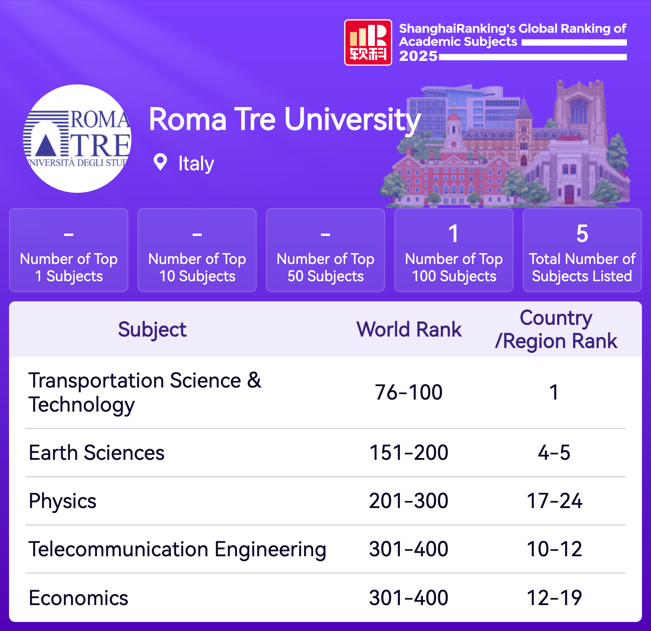 | Subject | Rank |