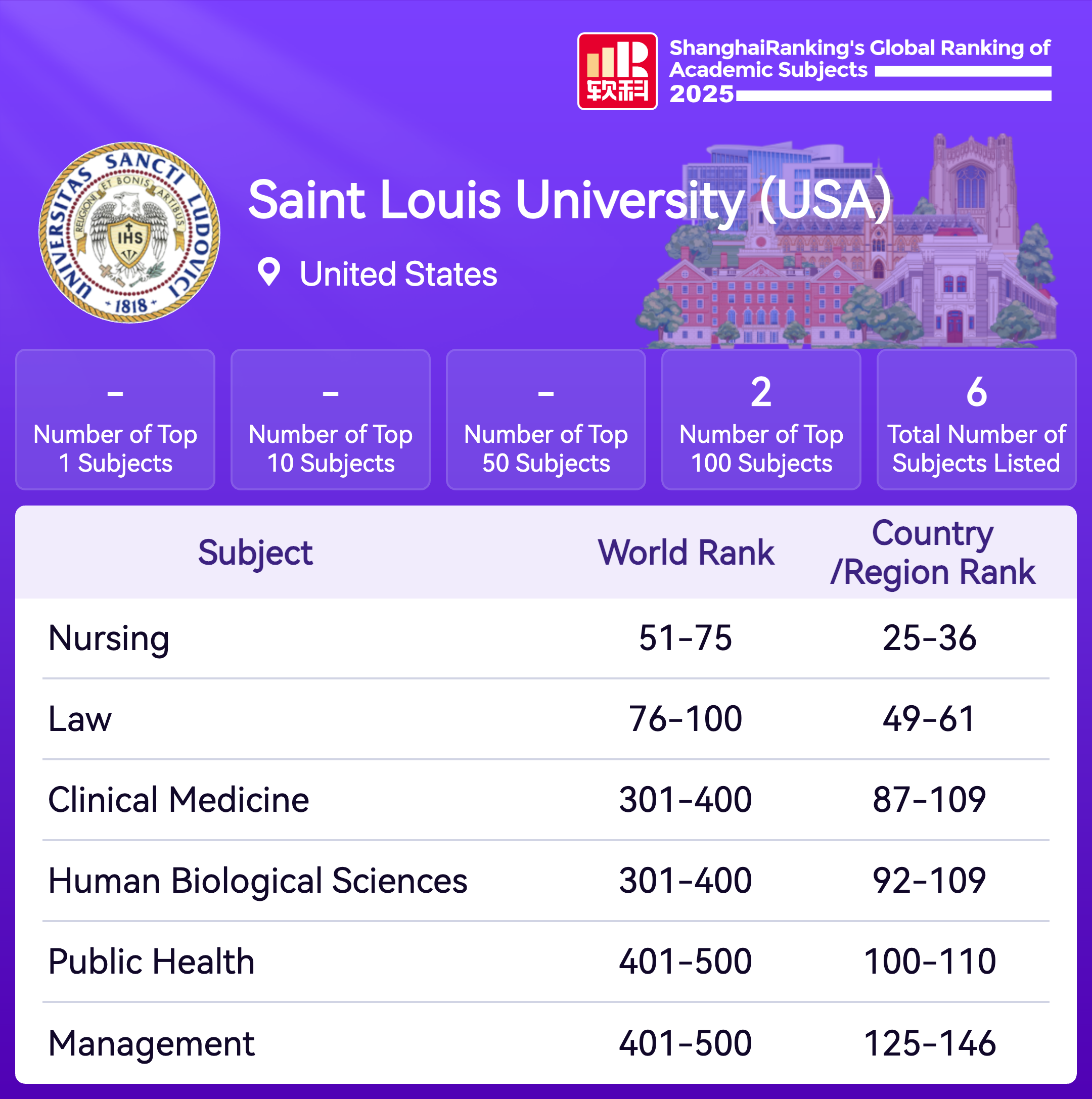 Saint Louis University (SLU) is a premier Catholic, Jesuit research university. Founded in 1818, SLU is the second-oldest Jesuit university in America. The University’s main campus is in St. Louis, Missouri, a centrally located and easily accessible U.S. city that is home to the world-famous Gateway Arch. SLU also has international campus in Madrid, Spain. Offering more than 90 undergraduate programs and nearly 100 graduate and professional programs — many of them nationally ranked — SLU educates nearly 13,000 students from all 50 U.S. states and nearly 80 foreign countries. At SLU, 99 percent of tenured and tenure-track faculty members hold a Ph.D. or the highest degree in their fields. The University has an impressive student-faculty ratio (11-1), which ensures that students receive personalized attention from prestigious scholars. As one of only eight Catholic universities in the United States with a high or very high research activity designation (Carnegie Classification of Institutions of Higher Education), SLU also offers students at all levels the opportunity to collaborate with innovative researchers on groundbreaking work that is changing lives. For information about Saint Louis University, visit http://www.slu.edu.