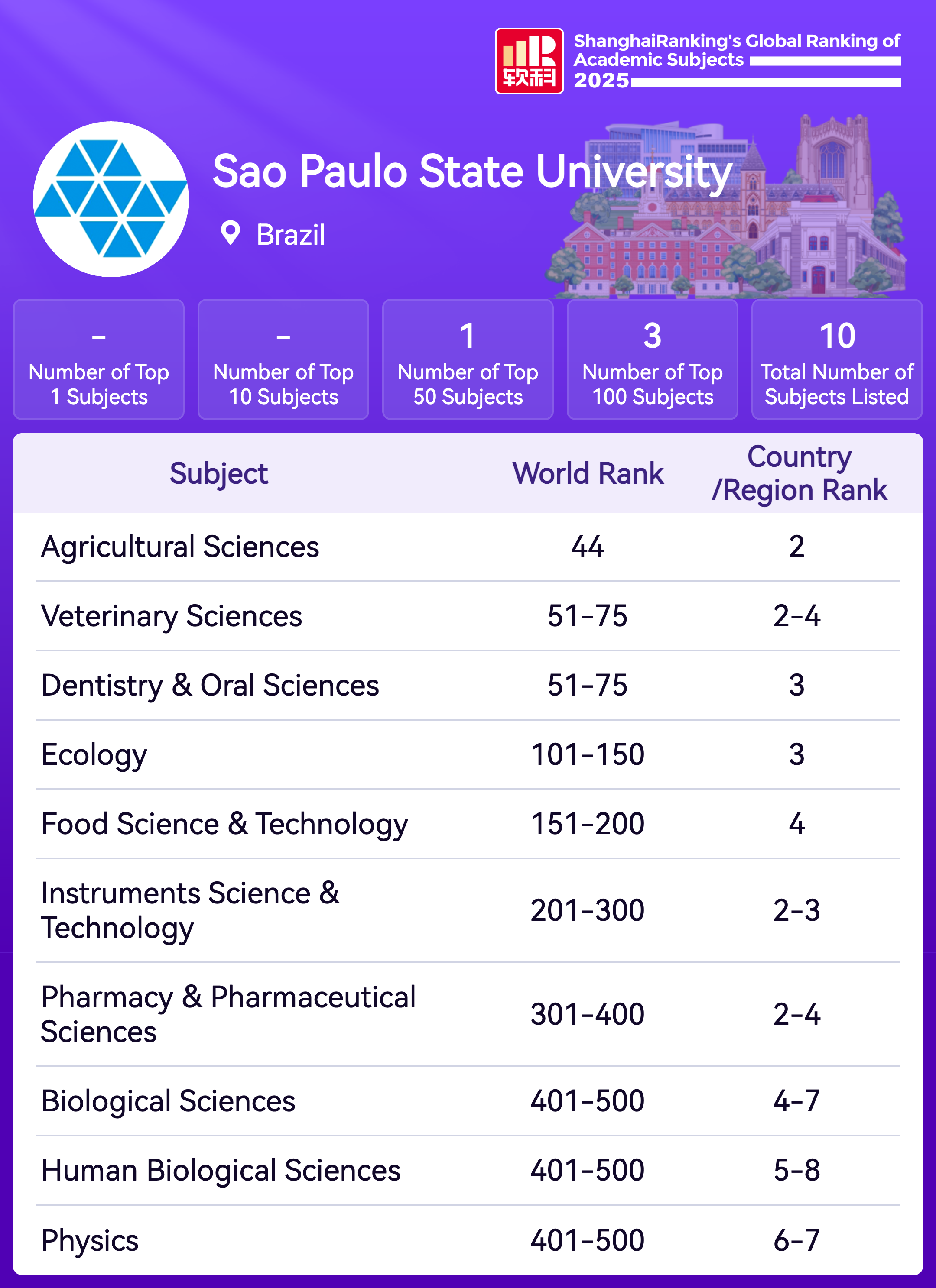 UNESP - Universidade Estadual Paulista was created in 1976. UNESP is the most successful model of a multicampus university in Brazil. This unique characteristic allows intense and diversified activities in Sao Paulo, the most developed State in the country. Its influence can be recognized by the level of regional development where its campuses are located: one in the State capital and 22 others strategically distributed throughout the State. It has consolidated a project joining scientific, technological, economic, cultural and social development committed to democratic principles and clearly conscious of its status of a governmental institution, inserted and highly active in Brazilian society. UNESP's actions are focused in nearly every field of experimental and theoretical sciences such as: biological, health, engineering, communication, humanities, social sciences and arts, among others. The interaction of UNESP with different sectors of society exerts a strong influence on its social landscape. Its high qualification level can be confirmed through the expressive number of former students inserted in the professional market, as well as its top position in Brazilian national ranks regarding all fields where it is present. Following the worldwide trend and sure to be prepared for that, Unesp is now, more than ever, looking for new boundaries to cross and challenges to face, by signing new agreements with top quality Institutions throughout the world. UNESP is a respected institution with accomplished members, fully-accredited programs and strong research base-and these will remain its priorities. UNESP is one of the largest and most important Brazilian universities, with distinguished achievements in teaching, research and extension services. UNESP is supported by State funds and along with USP (Universidade de São Paulo) and UNICAMP (Universidade Estadual de Campinas) offers free public higher education in Sao Paulo State. Technical and Scientifical Cooperation - UNESP receives financial aid from the main research supporting agencies in the country, such as: FAPESP, CNPq, CAPES and FINEP. These resources are guaranteed by agreements that allow faculty members and students to participate in exchange programs, development of academic projects and services. These agreements are signed with national and foreign universities, institutes, associations, foundations, city halls, Government bureaus, ministries, federal and state agencies and private companies, adding up to 300 partnerships that increase annually.