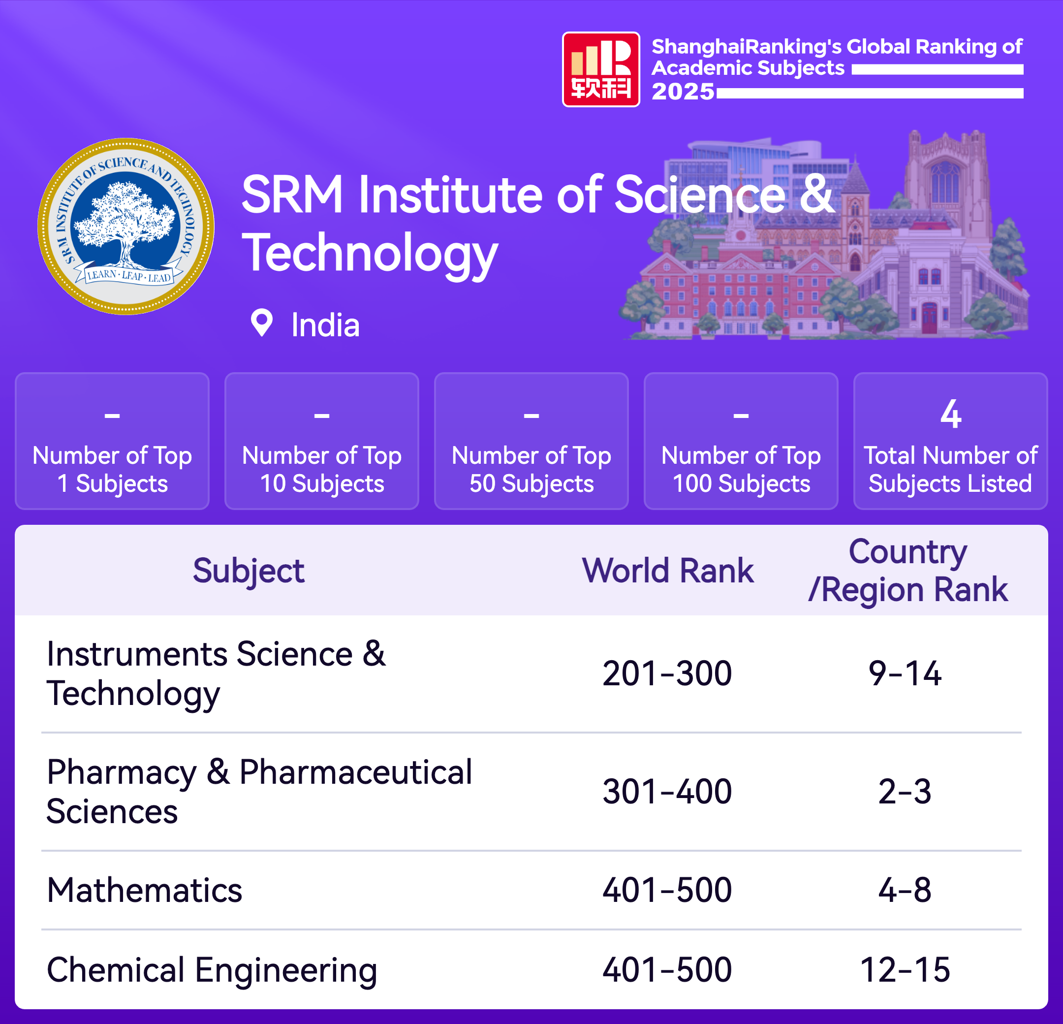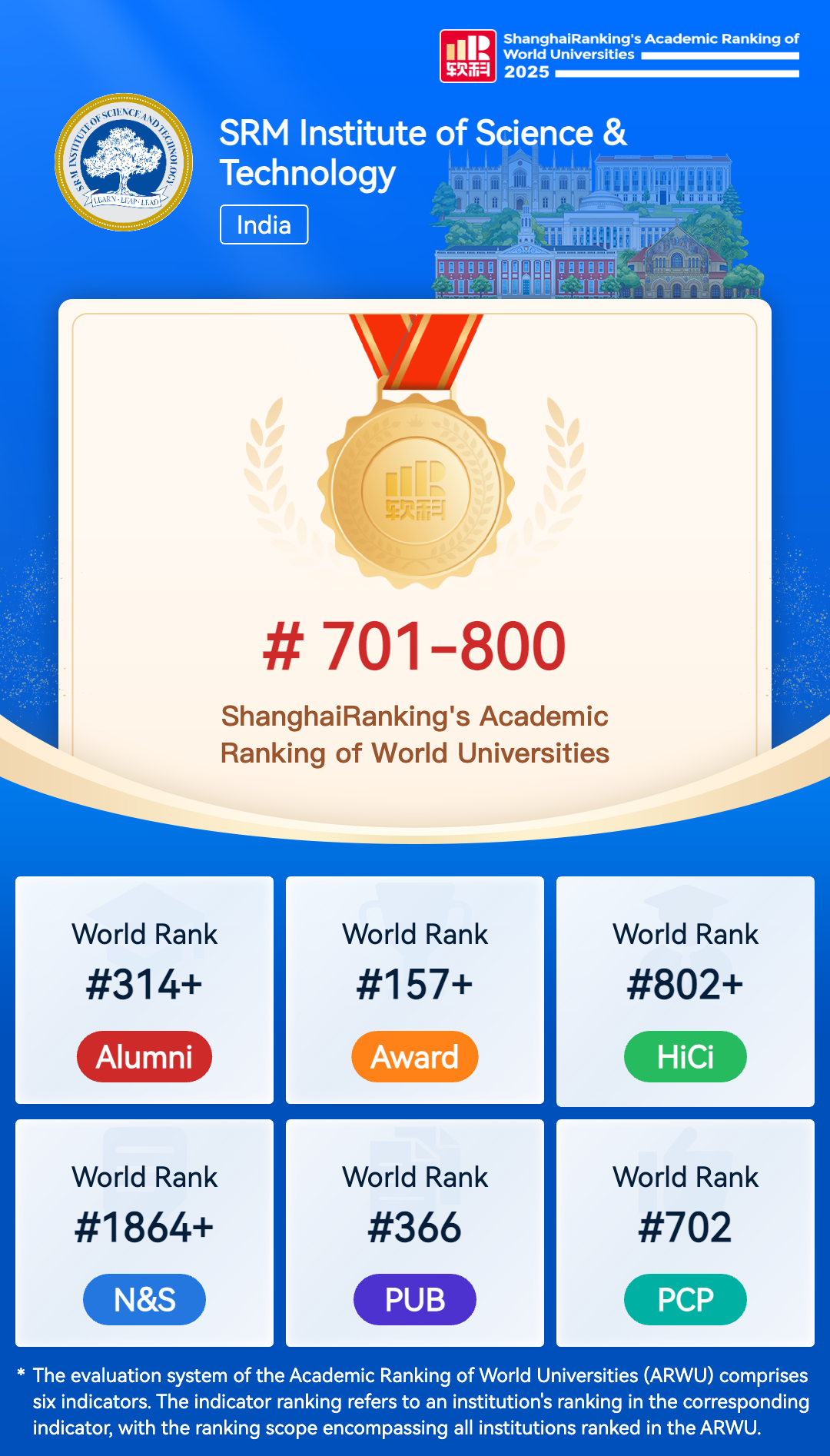The Academic Ranking of World Universities (ARWU) is recognized as the precursor of global university rankings and the most trustworthy one. ARWU presents the world's top 1000 research universities annually based on transparent methodology and objective third-party data.