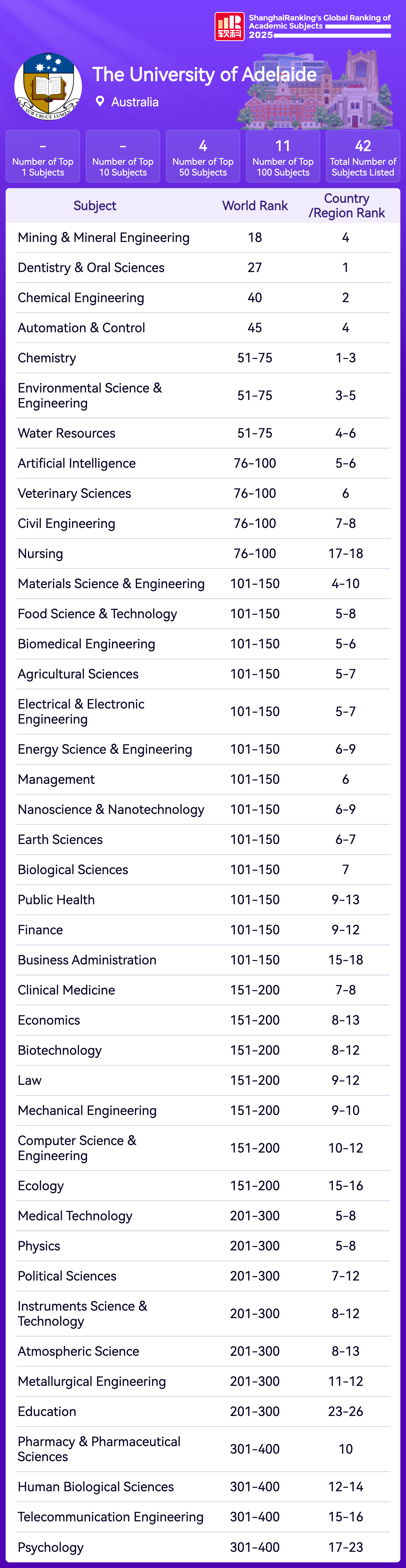 | Subject | Rank |