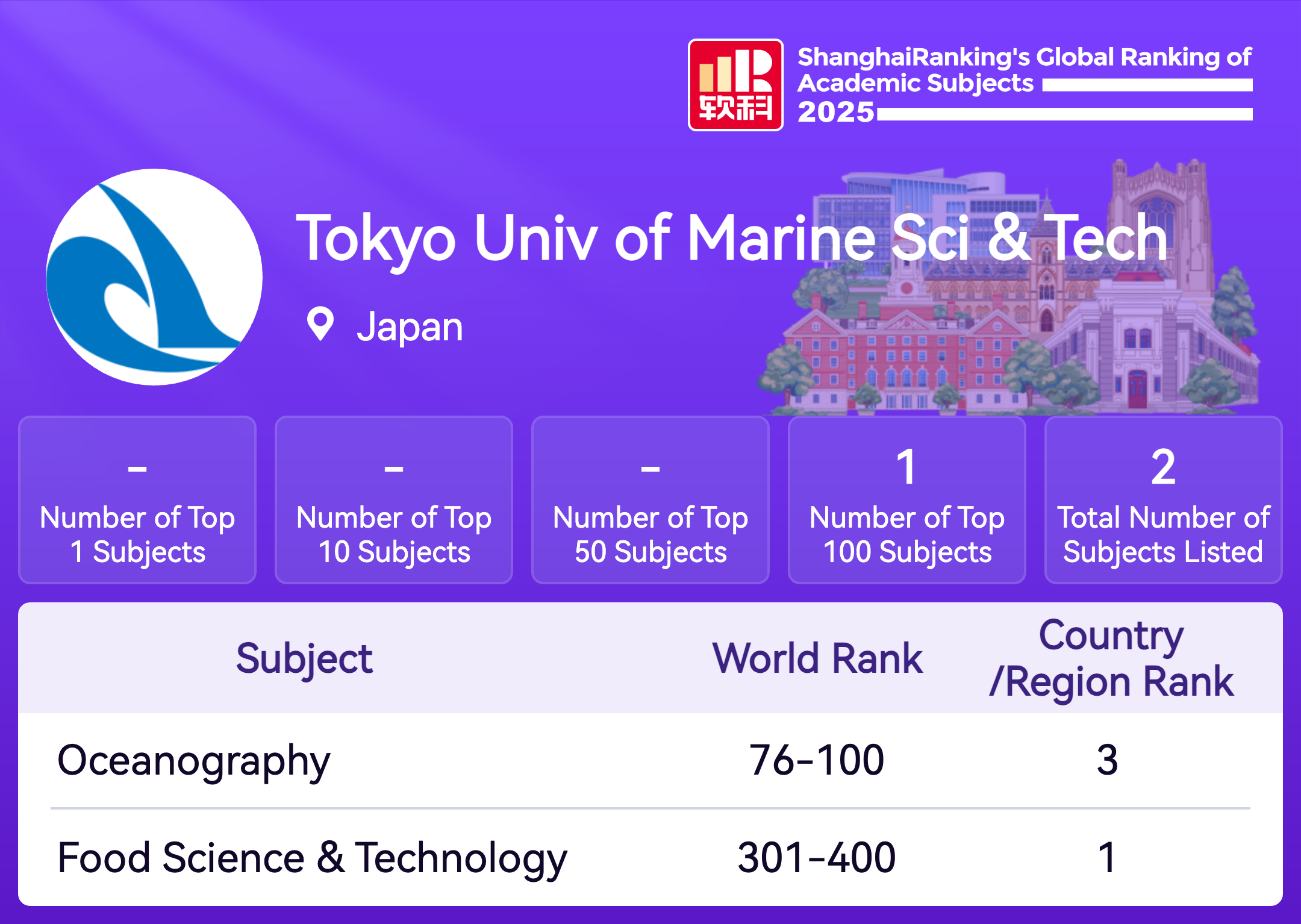University philosophy To carry out basic and applied education and research activities related to studies and to science and technologies concerning oceans, with a view to contributing to sustainable development of human society. Program and goals for cultivation of human resources It is necessary for Tokyo University of Marine Science and Technology, the only maritime university in Japan, to serve as a core educational and research base for “learning about the sea in order to preserve its integrity and put it to responsible use” and to perform its missions, so that our country may develop as a maritime nation and play a role as an international contributor. Based on this platform, our university will conduct comprehensive education and research concerning the oceans, centering on training for highly skilled business professionals, including researchers, in order to foster development of human resources with the following abilities and qualities: Capability to deepen scientific recognition of the oceans, to present strategy for desirable utilization of the natural environment, and to put such utilization into practice Capability to act based on ability to think logically and being able to exercise appropriate judgment with a sense of responsibility to society Ability to recognize and understand various issues regarding modern society from a broader perspective and to exercise practical leadership in response to such issues Ability to address and solve problems based on having a well-rounded character, a broad understanding of cultures, and deep specialized knowledge and professional expertise Wide-ranging vision and skills, together with cultural literacy as the basis for international exchange Vision A university of world-leading excellence, producing a large number of leaders in industrial, official, and academic circles, who are active internationally in the maritime field Areas of study Our university is engaged in studies across a broad spectrum, focusing on the areas of environment, resources and energy, and including their composite and peripheral aspects.