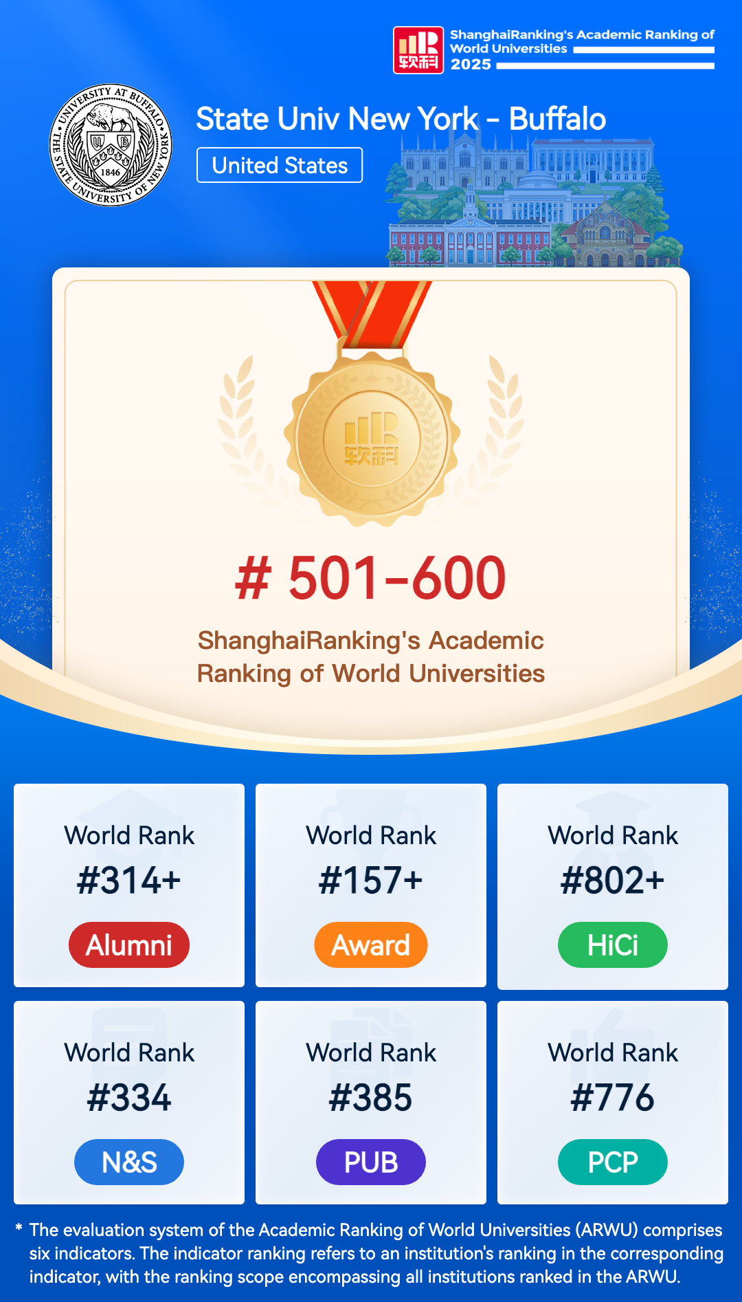 The Academic Ranking of World Universities (ARWU) is recognized as the precursor of global university rankings and the most trustworthy one. ARWU presents the world's top 1000 research universities annually based on transparent methodology and objective third-party data.