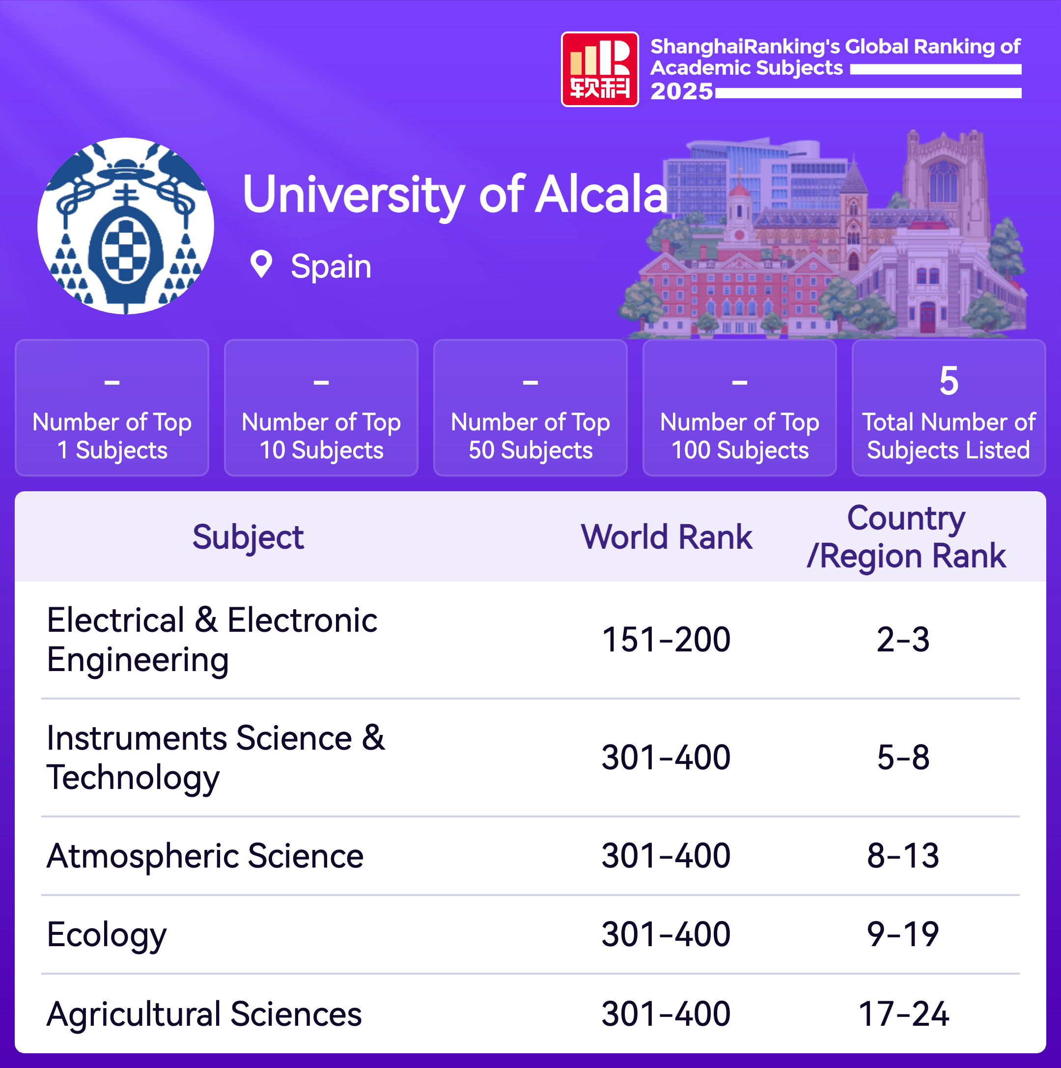 The University of Alcalá (UAH) is a public university located in Alcalá de Henares, Madrid, a UNESCO World Heritage site and one of the longest standing European universities which dates back to 1293. In 1499, Cardinal Cisneros expanded the institution’s studies with the creation of a Higher College, which would later become the University of Alcalá, one of the first examples of a model university town. Today the University of Alcalá is a modern institution, founded in 1977, which offers more than 40 degrees, 46 official masters and 26 PhD programs in five branches of knowledge: Arts and Humanities, Law and Social Sciences, Sciences, Health Sciences, and Engineering and Architecture, adapted to the European Higher Education Area. The UAH preserves its traditional humanities faculties, a testimony to the university's efforts to promote and diffuse the Spanish language through both its studies and the Cervantes Prize, which is awarded annually by the King and Queen of Spain in the Paraninfo (Great Hall). The University has added to its time-honoured education in the humanities and social sciences new degree subjects in scientific fields such as health sciences or engineering, spread out across its 3 campus, 9 faculties, 23 departments and 4 associated teaching hospitals where students may do their internships and one Science Technology Park. The University is firmly committed to research, technological innovation, and collaboration with business and industry and also to defense of transparency, human rights and sustainability, and environmental protection (one of the most sustainable universities in the world: 19th worldwide among 780 universities and 2nd of Spain, according to GreenMetric, and 3rd in the world, according to Coolmyplanet). Today, the UAH is a modern university and one of the most prestigious in Spain. One of the top 500 in the QS World University Ranking, it has been awarded the highest rating for its excellence in teaching, internationalization, innovation, equipment and infrastructure, and social commitment, according to the QS Stars international university quality accreditation system. The UAH was also included in the Arts and Humanities ranking, which lists the 400 best universities in the world, and among the 250 best Universities in the world in the subjects of English Language and Literature and Modern Languages. The UAH is an institution with a clear international vocation, offering its students 1,500 study exchange opportunities at more than 400 universities in 55 countries. According to the QS World University Ranking, the University of Alcalá is also Spain’s second best at attracting international students. The UAH obtains maximum scores for international mobility (incoming students and outgoing students) and external fundraising for research, both in the Global Ranking as well as in the specific knowledge areas evaluated in the U-Multirank. It offers various masters degrees entirely in English and the option of completing a doctoral thesis in English in a wide variety of fields. The university is well known for its active support and promotion of Spanish language and culture and every year the Cervantes Prize, considered the most prestigious prize in Spanish literature. It is, in addition, an international benchmark for Spanish language teaching. A thousand students from 50 countries study Spanish every year in the classrooms at Alcalingua, the University of Alcalá’s Center for Spanish Language Teaching, accredited by the Cervantes Institute for examining the official Spanish Diploma in Spanish as a Second Language (DELE).