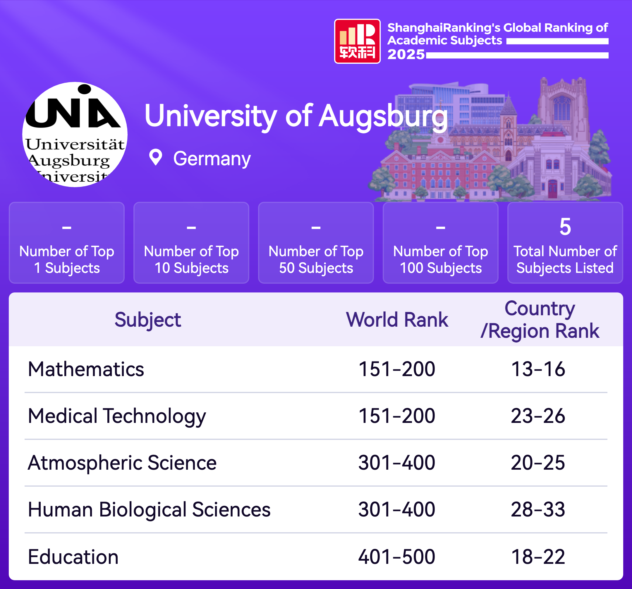 The Academic Ranking of World Universities (ARWU) is recognized as the precursor of global university rankings and the most trustworthy one. ARWU presents the world's top 1000 research universities annually based on transparent methodology and objective third-party data.