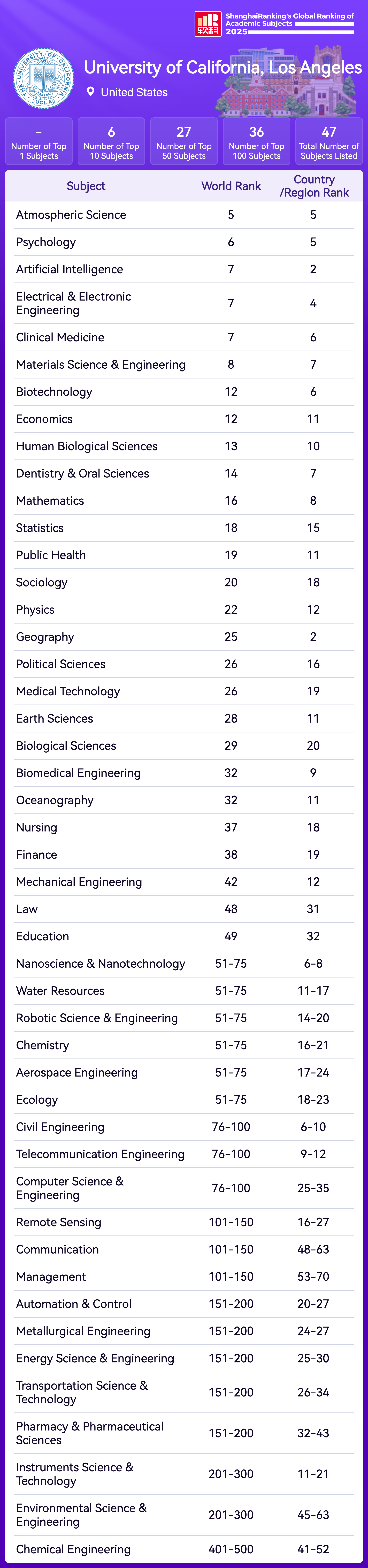 | Subject | Rank |
