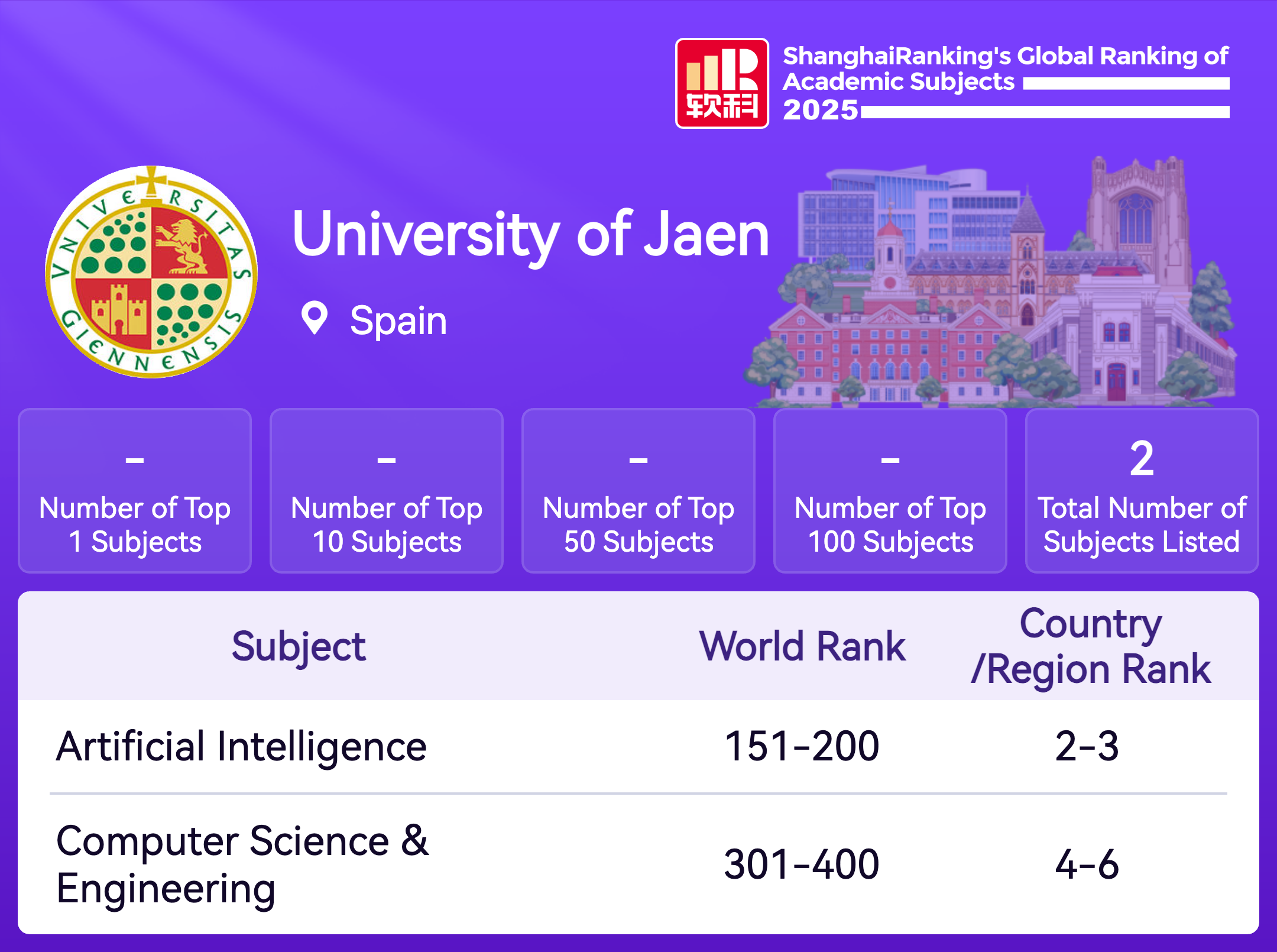 The University of Jaén (UJA) is a medium-sized public university in Spain which was established in 1993. Although the university has three campuses (in the cities of Jaén, Linares and Úbeda), the main one can be found in the city of Jaén where most of its faculties and colleges are located as well. With wheel chair accessible buildings the university welcomes not only Spanish but international students as well. This is part of a conscious effort to increase the university´s international profile that is of utmost importance in pursuit of widening its knowledge base and its horizons. UJA has signed a set of agreements and actively collaborates with institutions from all around the world with a significant emphasizes on European universities due to the high number of possibilities arising from the framework of the Erasmus+ program. However, students from all around the World are welcomed on all degree courses. In addition to this, UJA publishes calls for grant on a regular basis which includes many different scientific areas, such as the university´s Sport Grant for Outstanding Sportsman/Sportswomen. Latter can help attract non-European citizens as well. Thanks to an exceptional graduate and postgraduate international incoming and outgoing student population, UJA is becoming one of the leading exchange universities in Southern Spain. In relation to the above, it is also of crucial importance to describe the university using numbers. As mentioned before, the university has 3 campuses, 5 faculties, and 2 engineering schools. The university hosts some 17,000 students, from which almost 2.5% are international students. The majority of the students, some 14,000 students (81%) are enrolled in one of our gradual program, while the university has more than 1,500 students enrolled in one of the postgraduate program, 580 of which are engaged in a Ph.D. degree program. In light of the above numbers, it is not surprising that the university has 37 Bachelor´s, 44 Master´s, 9 international double degree and 19 Ph.D. programs. Academic courses in the framework of these programs are instructed by 895 lecturers, 82% of them being in possession of a Ph.D. degree. Students are encouraged to participate in the research conducted by the professors of the university. Thus, a number of books accounting for almost 800,000 are at our students’ disposal, including more than 43,000 periodicals and 150 data bases. Bachelor’s degree programs include basically all scientific areas, with an emphasis on the scientific field of Engineering. Academic degree programs related to Engineering account for a total number of 14 programs, while the university offers 3 programs related to Experimental Sciences, 2 programs in case of Health Sciences, 9 programs in the field of Humanities and Education, 8 programs related to Social and Legal Sciences and one Social Work program. In case of the Master´s degree programs, students can elect from a wide variety of programs. The number of programs related to the following scientific fields include: 11 to Engineering, 5 to Experimental Sciences, 8 to Health Sciences, 8 to Humanities, Education and Arts and 11 to Social and Legal Sciences. In accordance with the universities approach to become more and more international, UJA has 9 international double degree programs in cooperation with Italian, French, German and British universities. Our 19 Ph.D. programs help students engage into the research activity with many international publications as an outcome. The University of Jaén has a firm commitment in the development of research in different fields and its transfer to society. Around a hundred research groups work at the moment in all areas of scientific knowledge with more than 675 PhD. active, in collaboration with other national and international leaders in their field, and with the industry. It has more than 2000 publications in prestigious scientific journals, 31.1% of them developing in collaboration with institutions of other countries. Over 45% of these publications are in the highest quartile (Q1) in the Journal Citation Report index and 12.2% of them are in the 10% of publications more cited in the world.