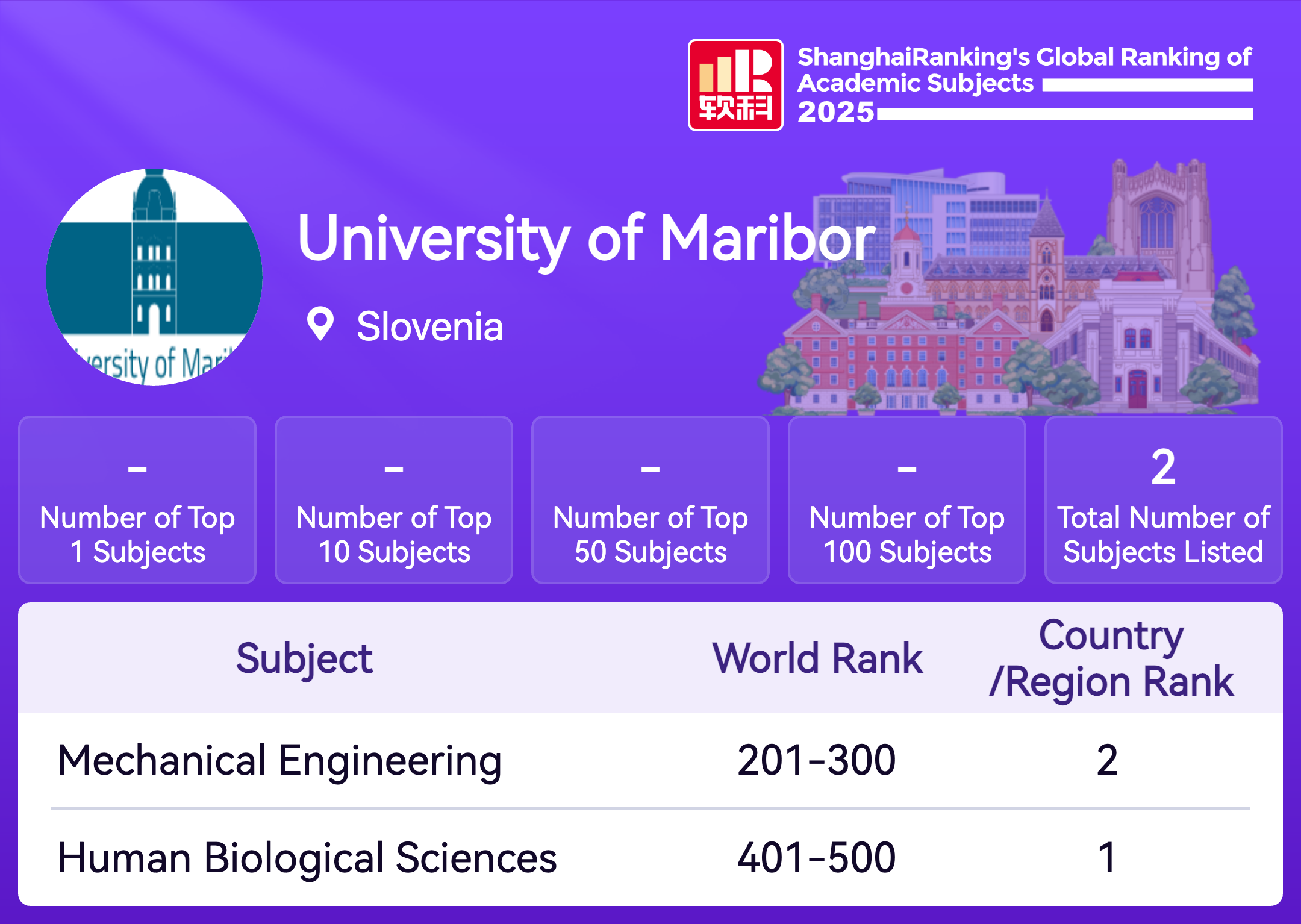 The University of Maribor is the second biggest and the second oldest university in Slovenia. Around 13 000 students study at the University of Maribor. With its nineteen member institutions, the university is turning into a central development institution attracting talented students from all over the world and providing study programmes at all levels. The management is aware that close ties between the university as a central educational and research institution and its local environment and the industry are of the utmost importance. For this reason, various activities aimed at integrating knowledge and R&D with the industry are being implemented in order to initiate concrete projects contributing to new jobs and new products with high added value. The University of Maribor is thus bringing together knowledge, research findings and the industry. These are only a few examples indicating the direction of future development of the University of Maribor. However, various impressive accomplishments can already be celebrated. The development of the first Slovene nanosatellite going into space, the success of the students participating in the Student Formula project, permanent high scores in the Imagine Cup international student competition for innovativeness, technological solutions and development, the prestigious Reimagine Education award for the Demola project where students work on concrete solutions to problems found in companies – placing the University of Maribor alongside the most prestigious universities – are only a few examples of UM's most notable achievements. The mission of the University of Maribor is based on honesty, curiosity, creativity, freedom of spirit, cooperation and knowledge transfer in the field of science, art and education. Concerned with mankind and sustainable development, the University of Maribor expands knowledge, raises awareness, and promotes humanistic values as well as the culture of dialogue, quality of life and global justice.