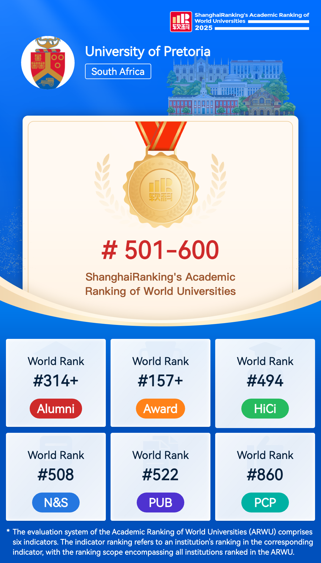 The University of Pretoria was established in 1908 as the Pretoria branch of the Transvaal University College. The College became a fully-fledged university in 1930. The University’s colloquial name Tuks, or Tukkies, was derived from the acronym TUC for the Transvaal University College. UP's current facilities portfolio consists of more than 790 buildings and structures spread over 33 sites located on six campuses that cover 1 100 hectares of land. In the 106 years of existence the University has produced more than 270 000 alumni. The University is a value-based, research-intensive university that equips its students to succeed in a rapidly changing world by providing students with inquiry-led training and learning opportunities. The University of Pretoria's long-term Strategic Plan, UP 2025, captures the essence of the shared vision, aiming to sustain UP's quality and relevance as a university that is firmly rooted in Africa, and to harness its existing and future potential for diversity. UP strives to ensure that it is recognised in the global market place of knowledge production. Great emphasis is placed on student life and support as well as the advancement of sport, art, culture and music.