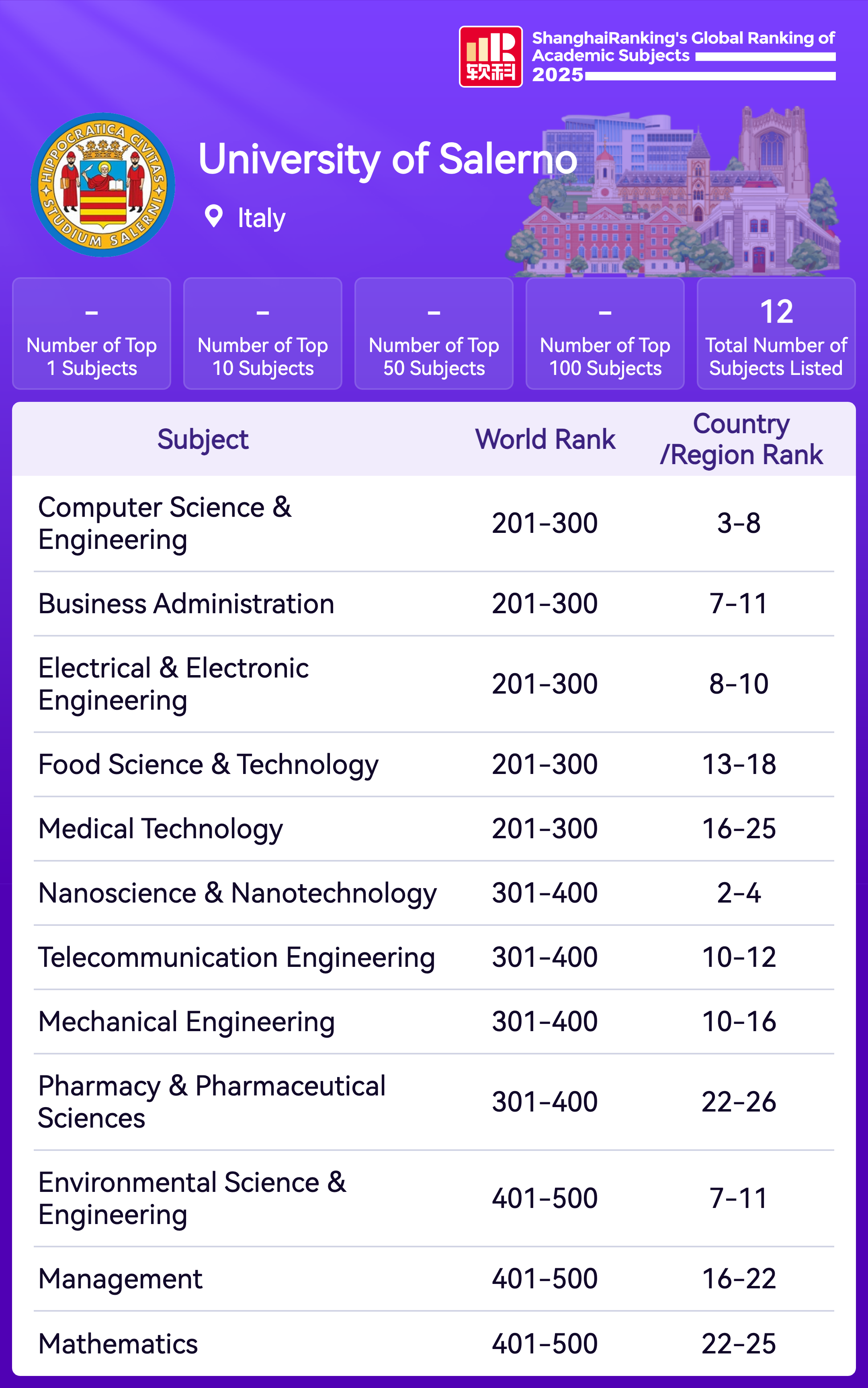 The University of Salerno is ideally linked to the oldest academic institution in the Old Continent: the Schola Medica Salernitana. Founded in the eighth century AD, the School reached its peak between the 10th and 13th century. In addition to medicine, its lectures included philosophy, theology and law. Closed by royal decree in 1811 under Joachim Murat’s Napoleonic government, the School earned Salerno the title of Hippocratica Civitas (City of Hippocrates) after the famous Greek physician and treatise writer. In 1944, by decree of king Victor Emmanuel III, the Istituto Universitario di Magistero “Giovanni Cuomo” was founded. This became state-owned in 1968, changing its name into Facoltà di Magistero dell’Università degli Studi di Salerno. Within a few years, the Faculty was joined by many others which contributed to the formation of a major university. The Faculty of Arts was established in 1969; then the Faculty of Economics (1970); the Faculty of Mathematical, Physical and Natural Sciences and the Faculty of Law (1972); the Full Degree in Engineering (1983); the Faculty of Pharmacy (1991); the Faculty of Political Science (1992); the Faculty of Foreign Languages and Literature (1996); finally, the Faculty of Medicine and Surgery (2006). As of 2013, in accordance with Law 240/2010, the faculties have been reorganized, the departments reconfigured and their respective functions redesigned. The University – which currently counts around 40,000 students – has a very large catchment area including, beside Campania, the Italian regions of Basilicata, Calabria and Apulia. Since 1987, the University has had its headquarters in the Irno Valley, a few kilometers from Salerno, at the junction of motorway intersections that make it central and easy to reach. Organized in the form of a campus (the Fisciano and Baronissi campuses), the University boasts modern facilities and efficient services for orientation, teaching, studying and leisure. It is a very large and still expanding complex, which covers an area of about one hundred thousand square meters. Modern service centres – such as libraries, the International/Erasmus Office, the University Language Centre, the University Centre for Orientation and Mentoring, the Placement Office, the Spin-Off Incubator – represent vital and valuable support for training. Furthermore, the Campus offers many other services such as residence halls for students and teachers, sports facilities, an indoor swimming pool, a theatre, a lecture hall, a nursery, open-air museum of contemporary art, parking areas, green areas and a thematic arboretum, thus providing a student-friendly environment to facilitate the entire academic journey. Thus, from traditionally being a place for integration of learning, the University becomes a place for integration of projects, cultures and - above all – people, by constantly encouraging study, research and life experiences to enhance cultural and human growth. The mission of the University of Salerno is to carry out research and educational programmes, developing links with the surrounding area while respecting the environment, with the aim of creating, enriching and, at the same time, offering a scientific, cultural heritage to students, enterprises, institutions and in general to the whole community. In keeping with this mission and core values, which are a constant reference point, the institutional goals are as follows: Research, Teaching and Education, Support for outstanding students and the diversely able, Development of the Campus as a community of individuals who share the same interests and values, Development of links with key players in the local area.