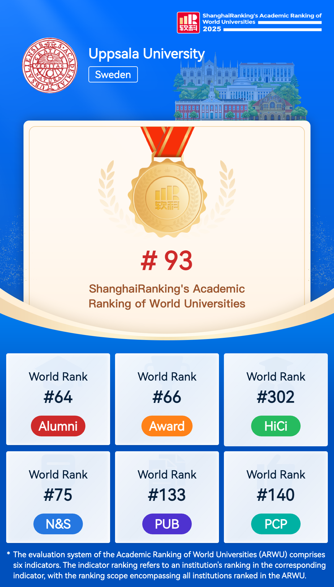 Uppsala University is a full-range university which provides education and research in nine faculties: theology, law, arts, languages, social sciences, educational sciences, medicine, pharmacy, science and technology. The university was founded in 1477 which makes it the oldest in the Nordic countries. Uppsala University offers some 60 programmes for beginners, about 50 master programmes, and some 2.000 single subject courses. This attracts 40,000 undergraduate and graduate students which corresponds to about 23,500 full-time students and every year some 4,500 undergraduate and graduate degrees are conferred. The university also offers some 30 international master programmes and has agreements for student exchange with 500 foreign universities in 50 countries. Postgraduate education includes 2,300 doctoral students (50% women). * About 300 doctorates and about 80 licentiate degrees are conferred each year. * 4,000 publications each year. * About 3,400 teachers/researchers (40% women). * Some 600 full professors (22% women). * Costs: Nearly 70% goes to research and postgraduate education. About 50% of research is funded by external sources. Uppsala is quite a small city (200.000 inh.) and it is to an extent dominated by the university and its students especially during semesters. The unique concept of student nations provides for an environment where academic tradition and modern student life can meet.