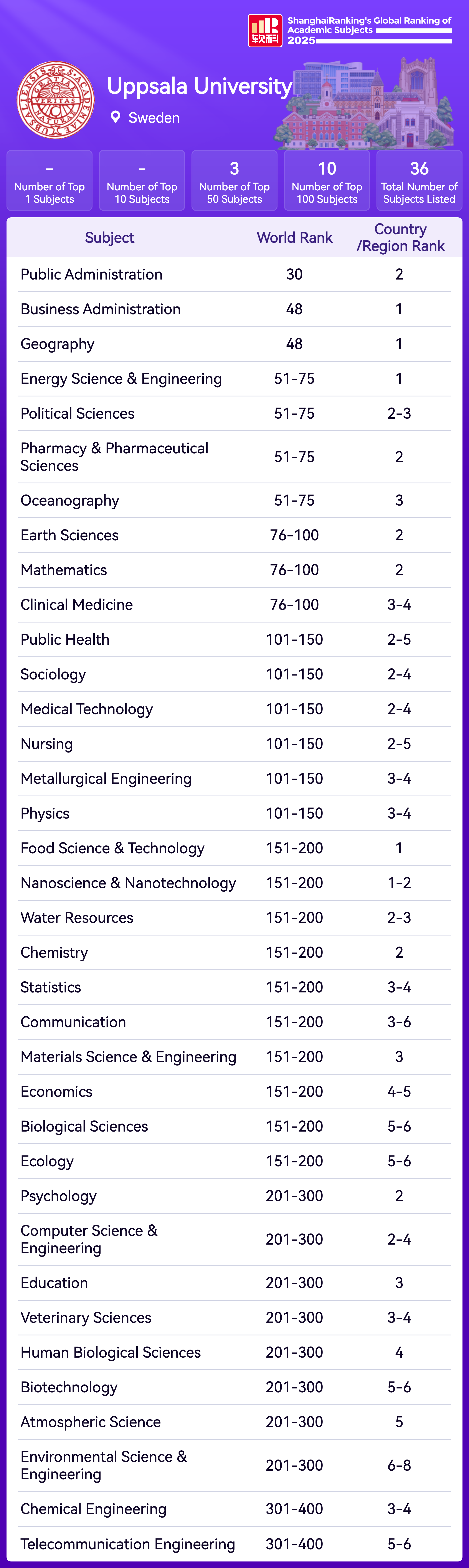| Subject | Rank |
