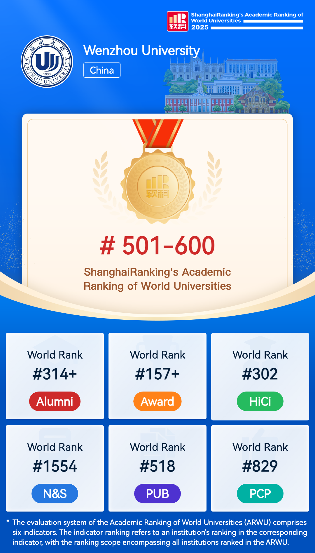 The Academic Ranking of World Universities (ARWU) is recognized as the precursor of global university rankings and the most trustworthy one. ARWU presents the world's top 1000 research universities annually based on transparent methodology and objective third-party data.