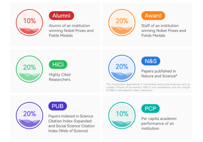Fields Medalists or Highly Cited Researchers, those universities published papers in Nature or Science, and those